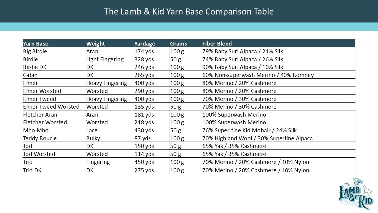 We published a new blog post in 2026 to re-introduce our most popular bases - complete with weight, yardage, grams and fiber blend!