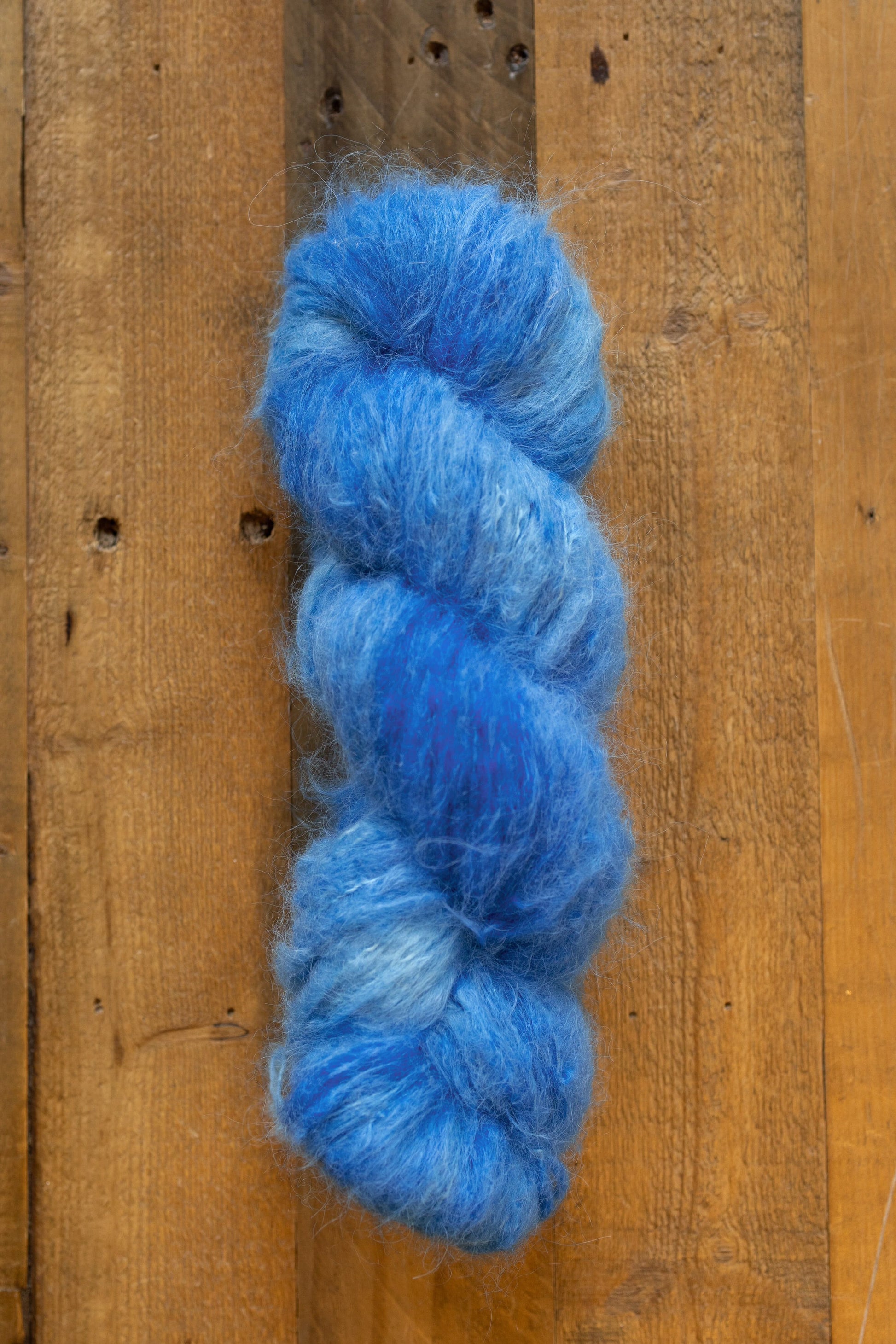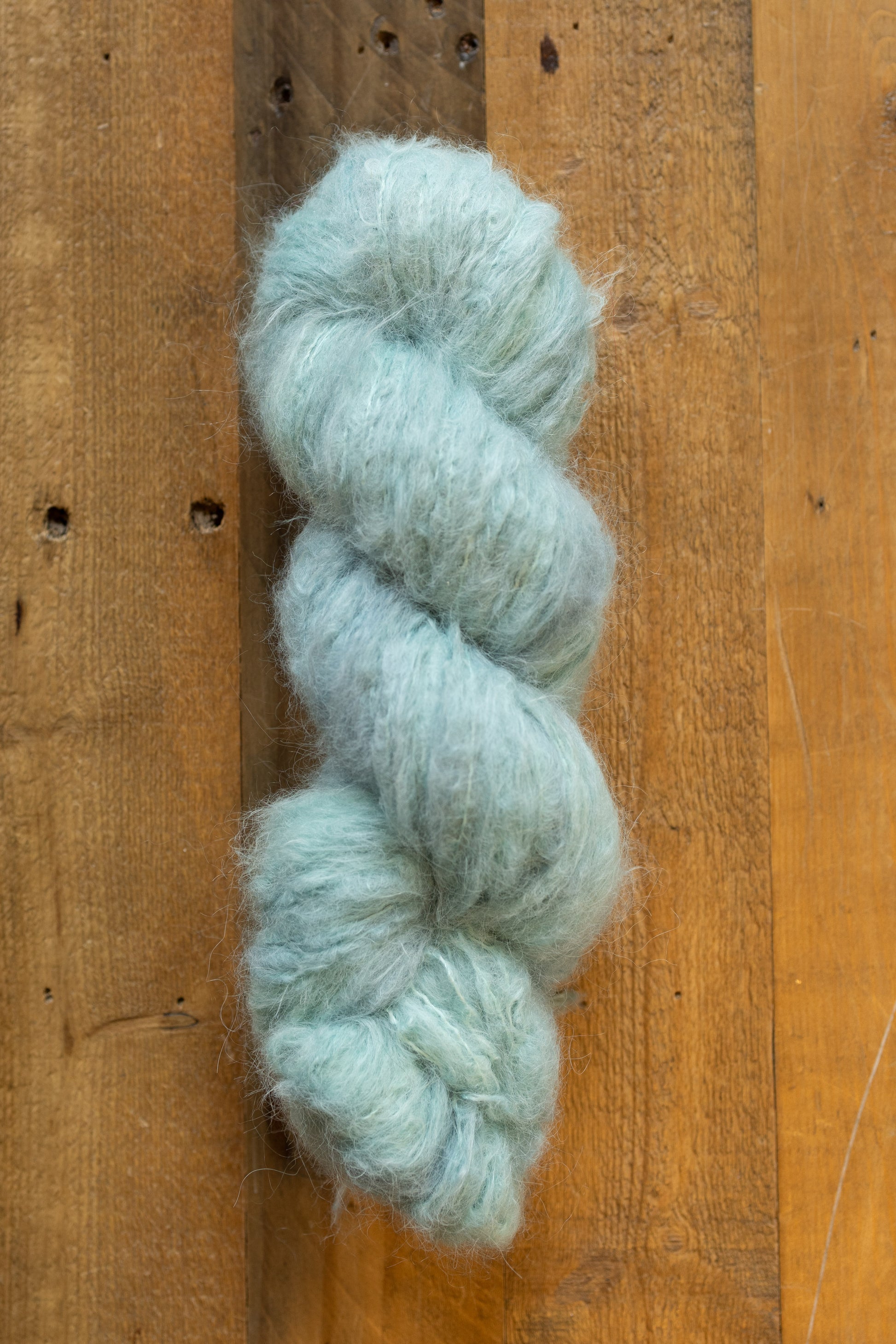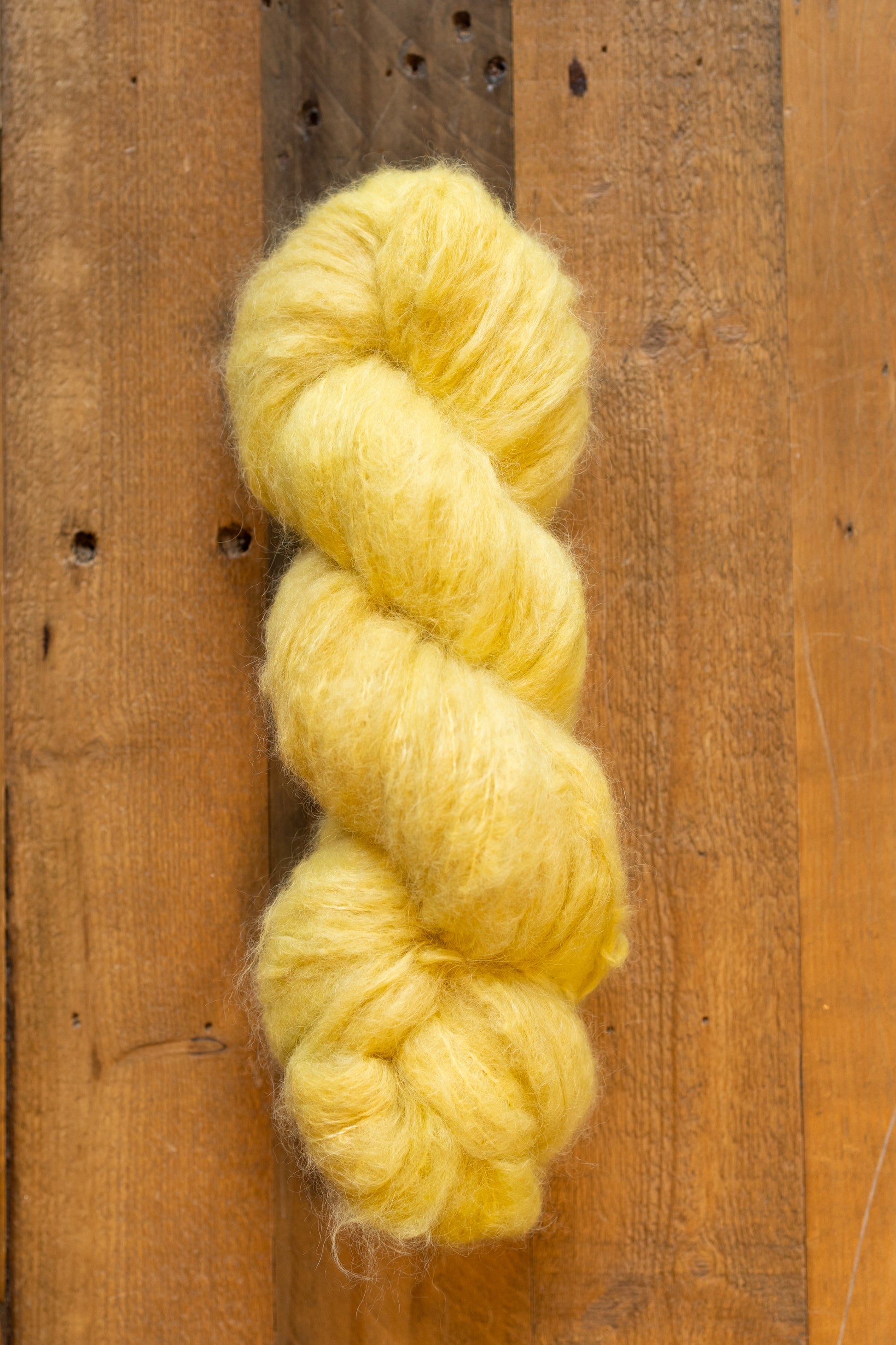 Birdie is known for its drape, this gorgeously soft baby suri alpaca yarn is blended with silk for strength. Birdie is the perfect alternative for those desiring a fluffy halo, but are allergic or sensitive to mohair. When held with another yarn, Birdie gives more opaque coverage than Mho Mho. Try it held single for a diaphanous effect, or doubled with itself, or another yarn, for more substance. To note: colors take slightly lighter to Birdie and its sisters, than to other bases.