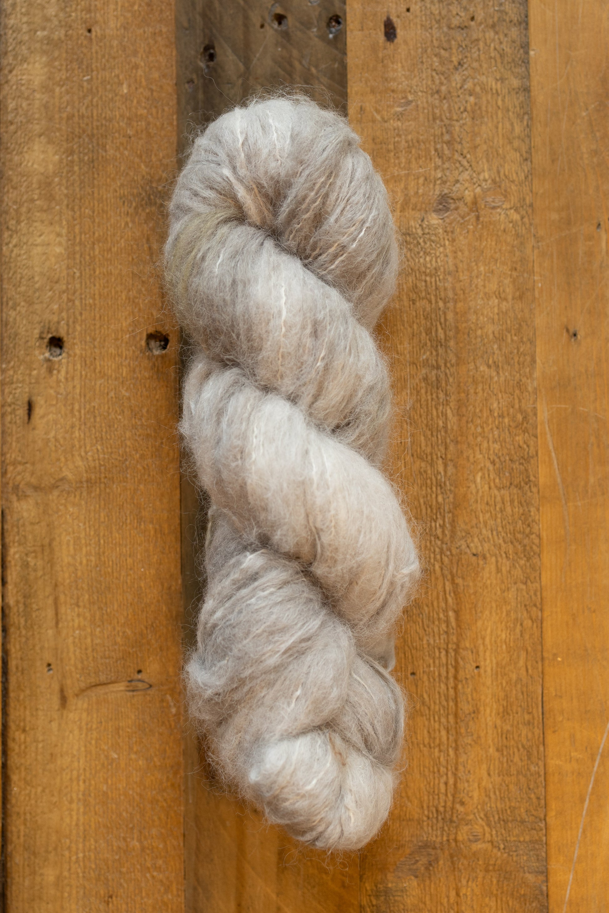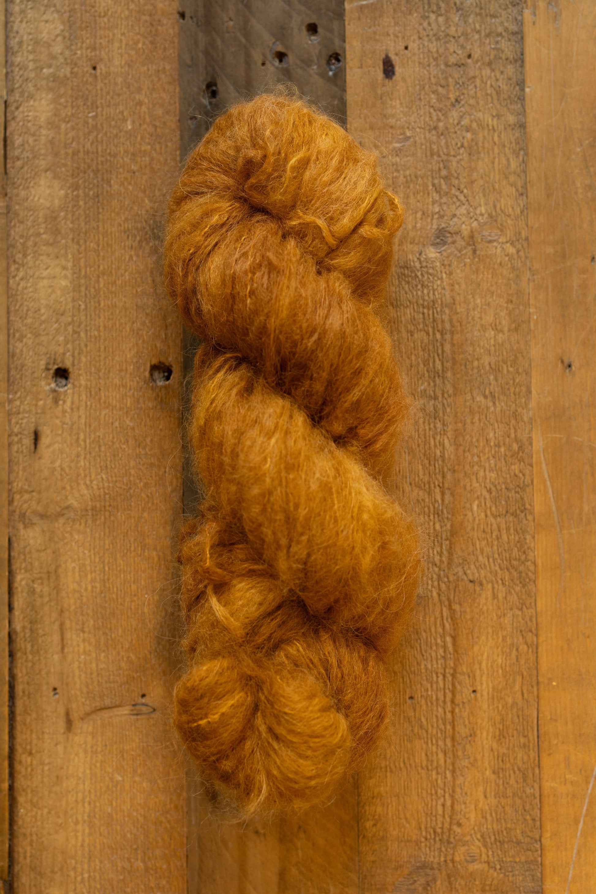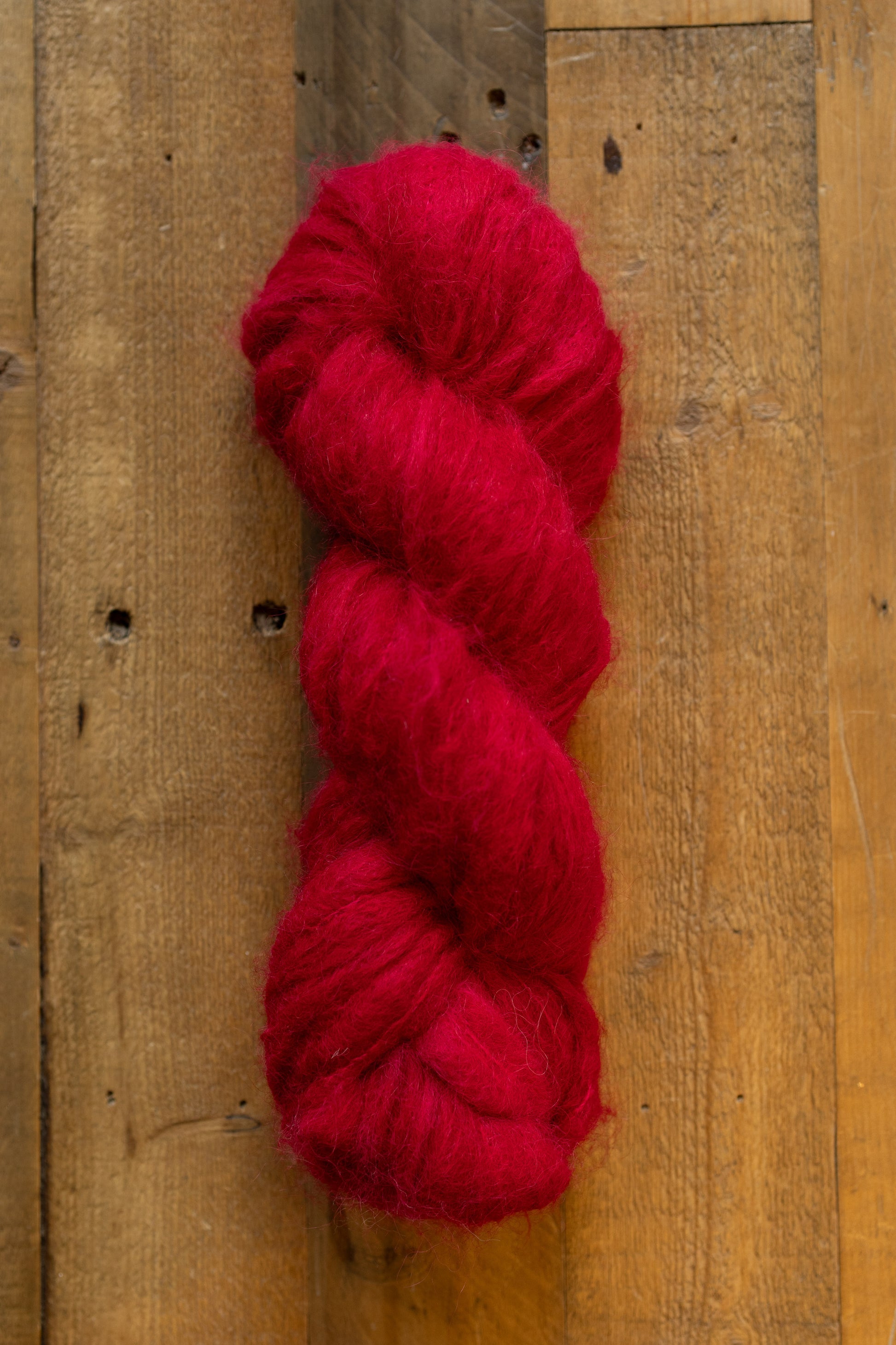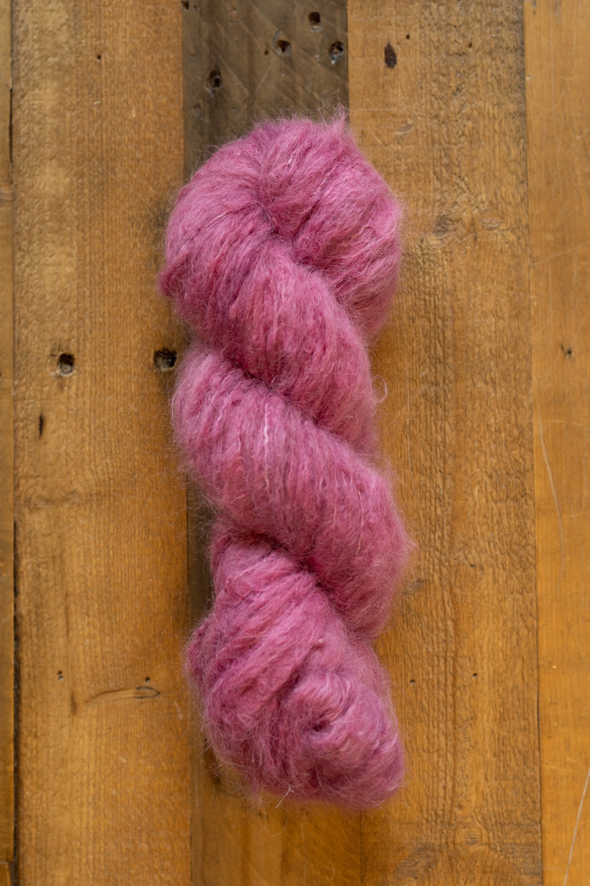 Birdie is known for its drape, this gorgeously soft baby suri alpaca yarn is blended with silk for strength. Birdie is the perfect alternative for those desiring a fluffy halo, but are allergic or sensitive to mohair. When held with another yarn, Birdie gives more opaque coverage than Mho Mho. Try it held single for a diaphanous effect, or doubled with itself, or another yarn, for more substance. To note: colors take slightly lighter to Birdie and its sisters, than to other bases.