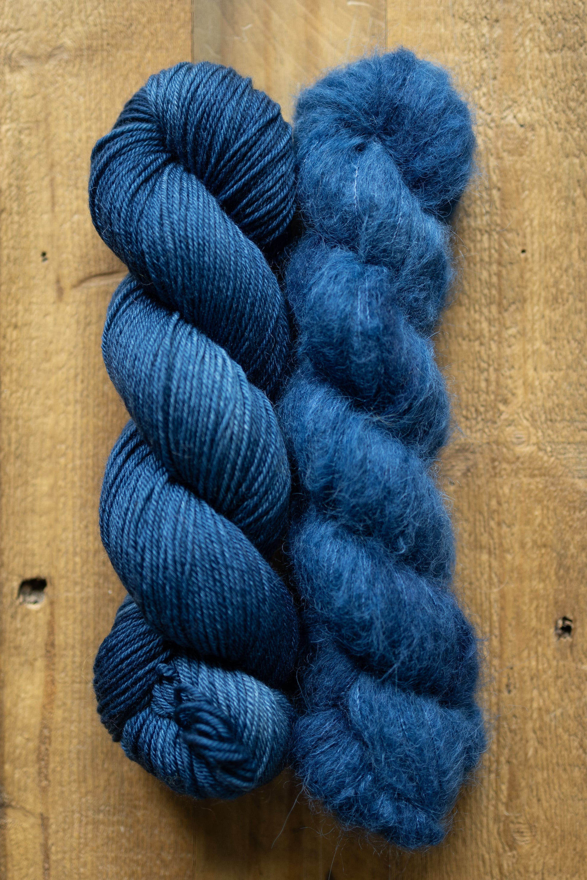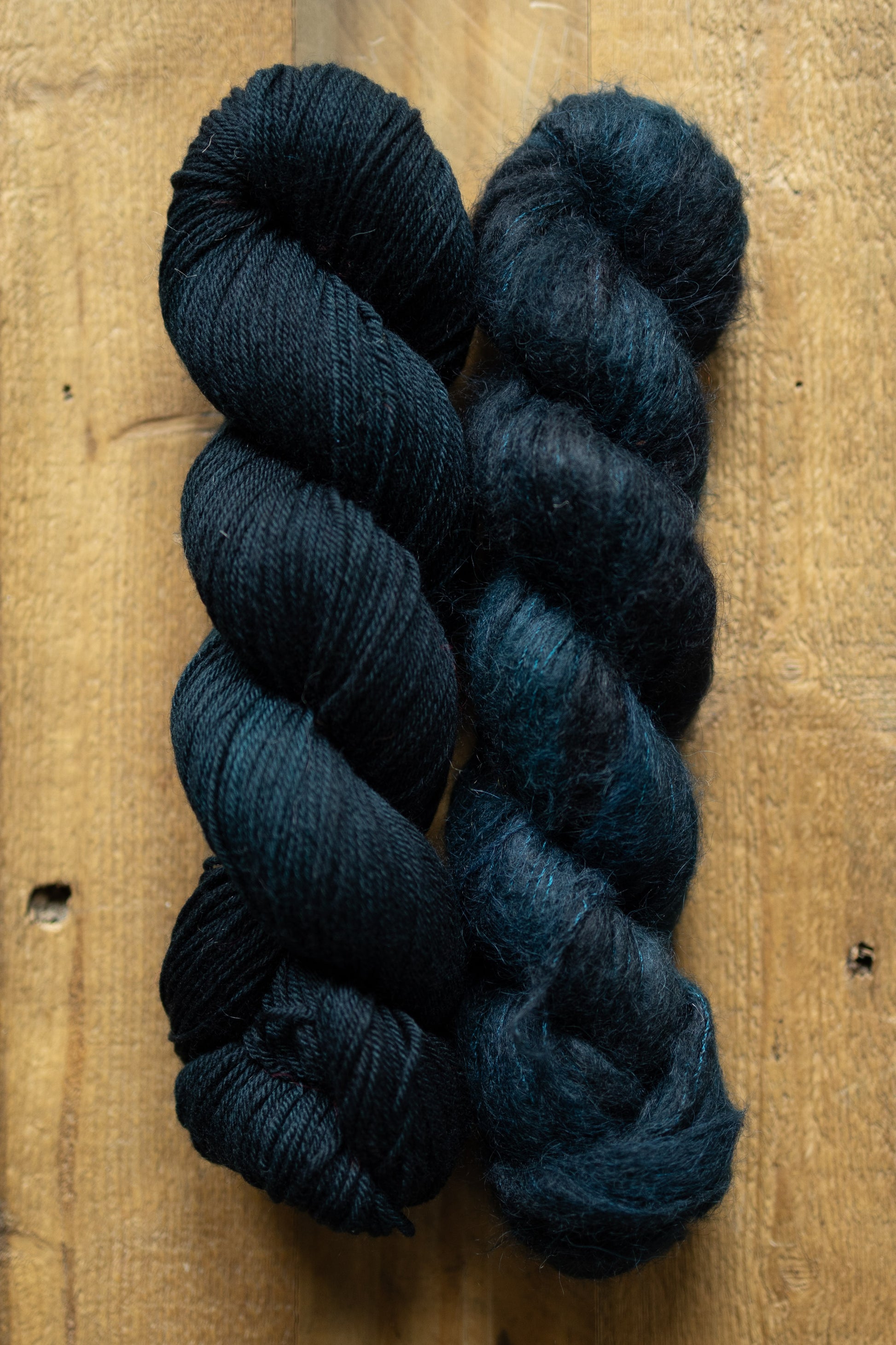 Dean - A beautifully deep and saturated navy blue that leans teal, especially in the light. The deepest tones of a Mallard duck.