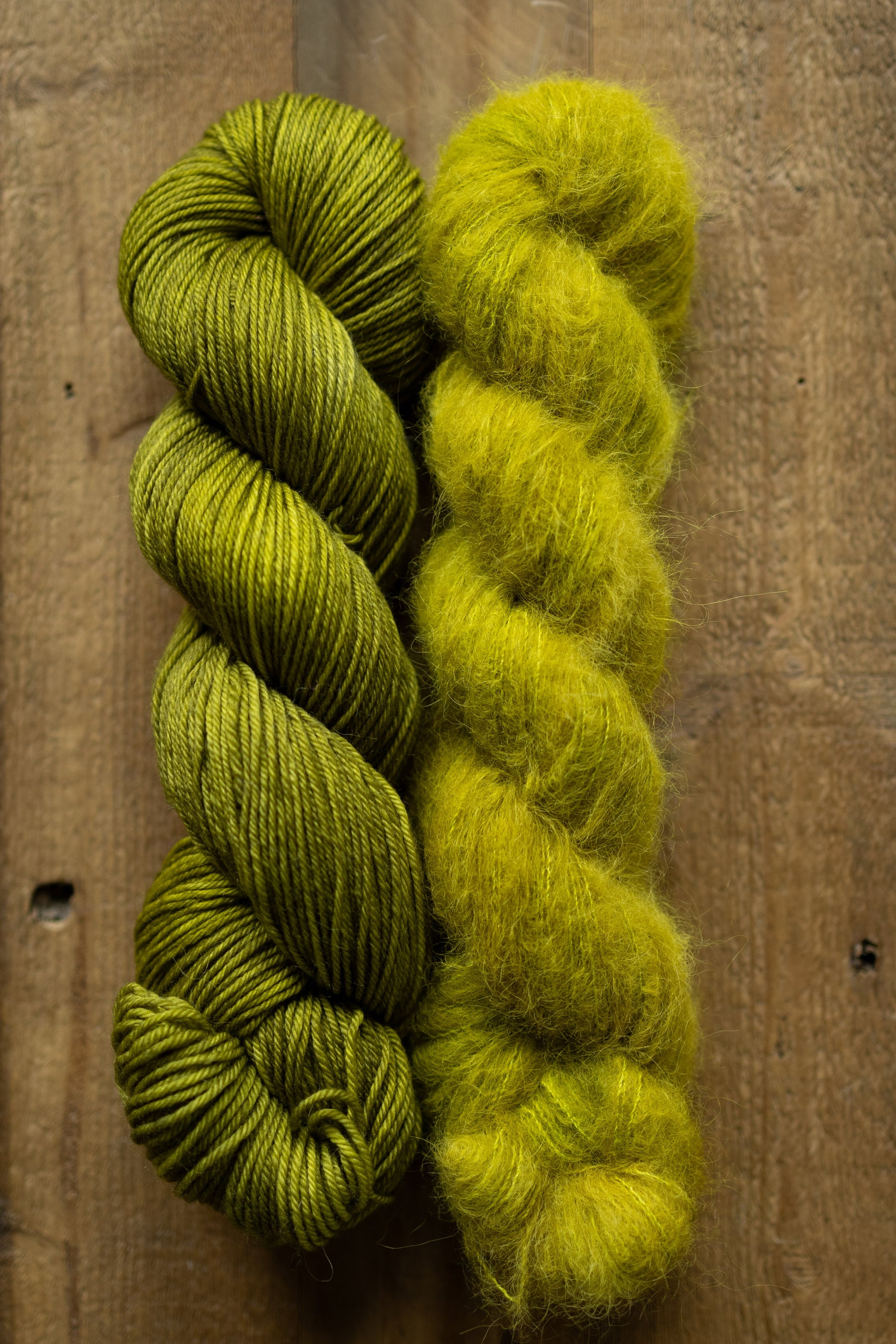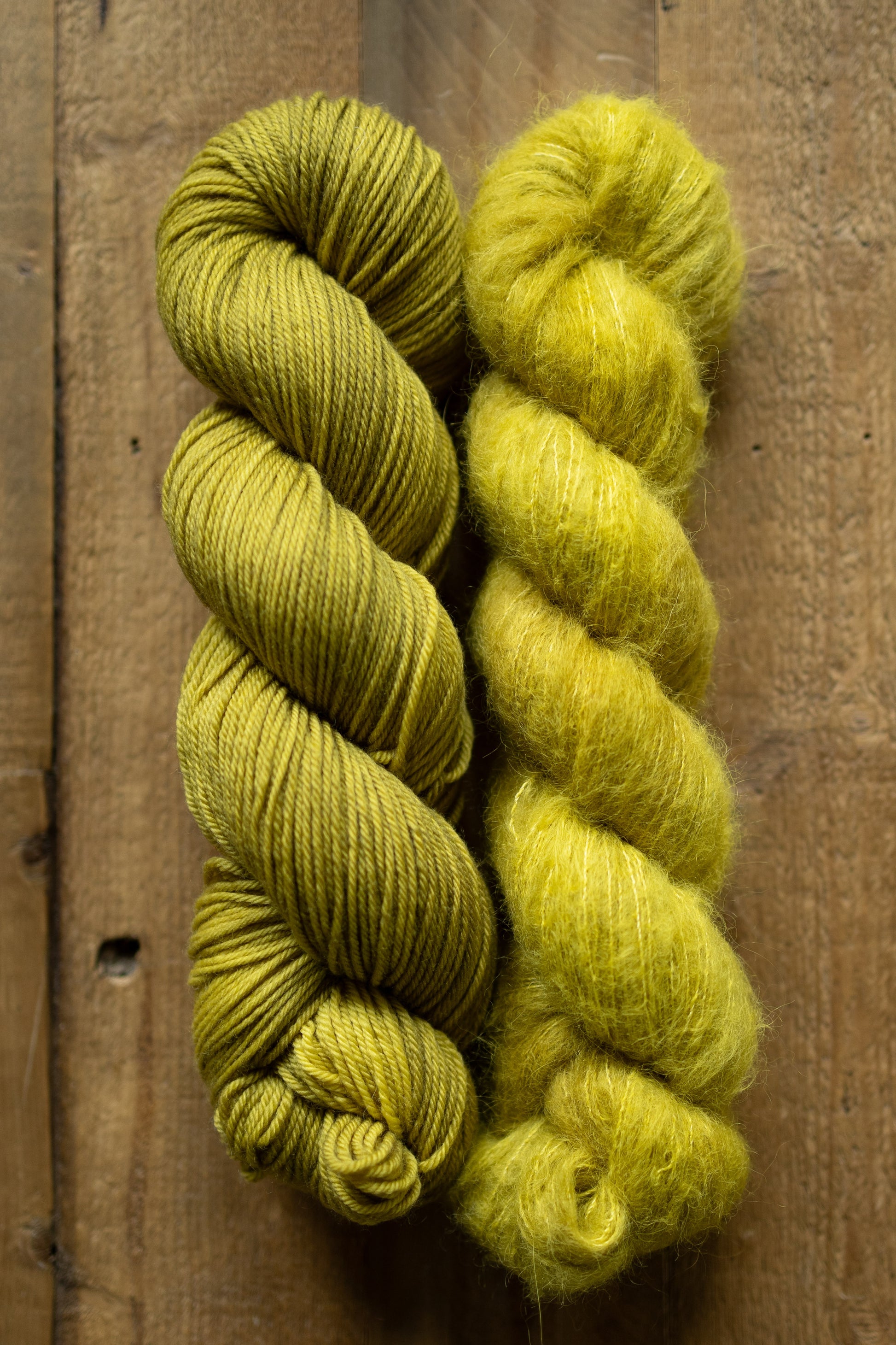 Slug - A colorway inspired by the Banana Slug, this color is a yellow-leaning scummy green that manages to make all the colors it is paired with come alive!