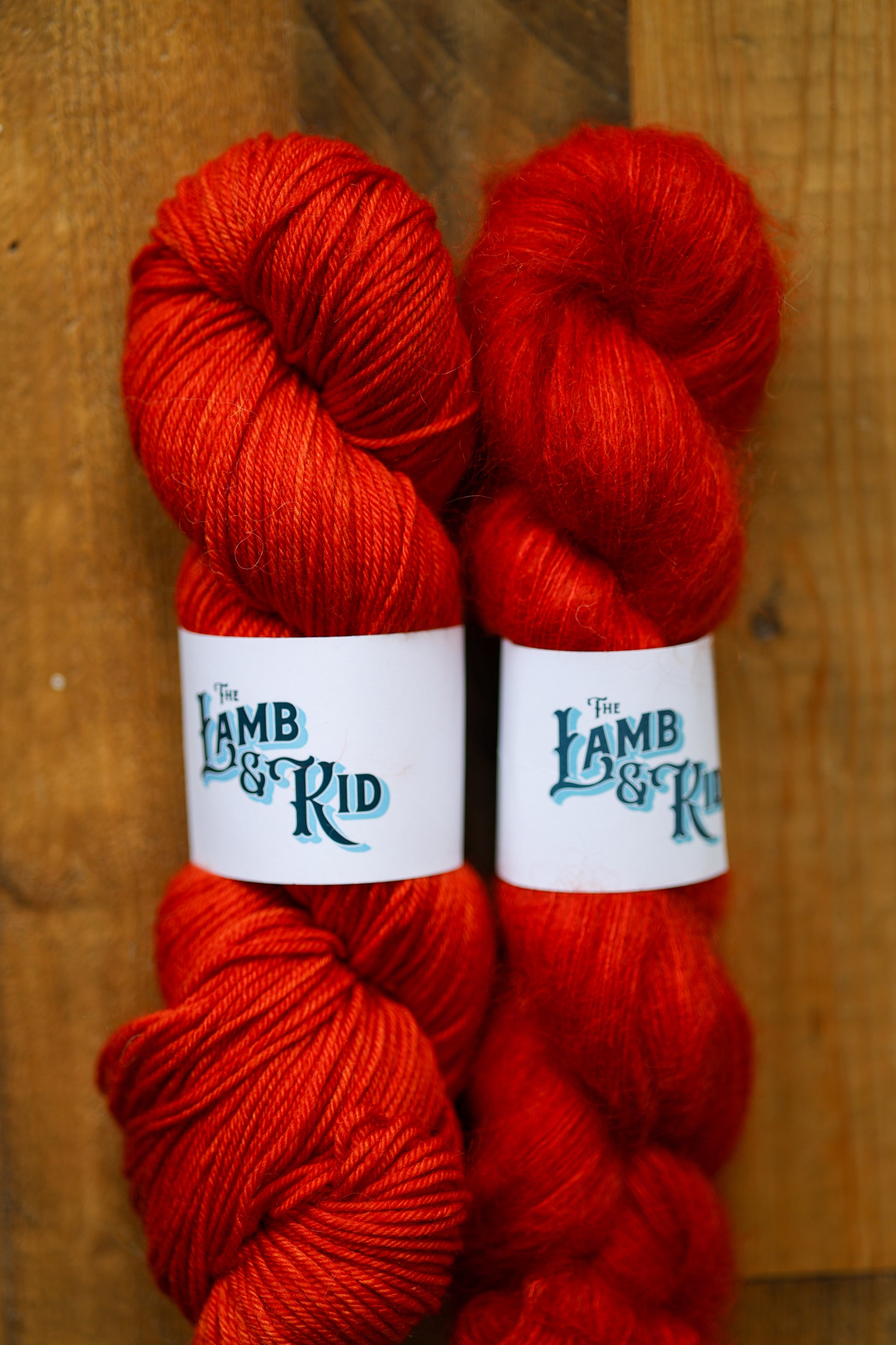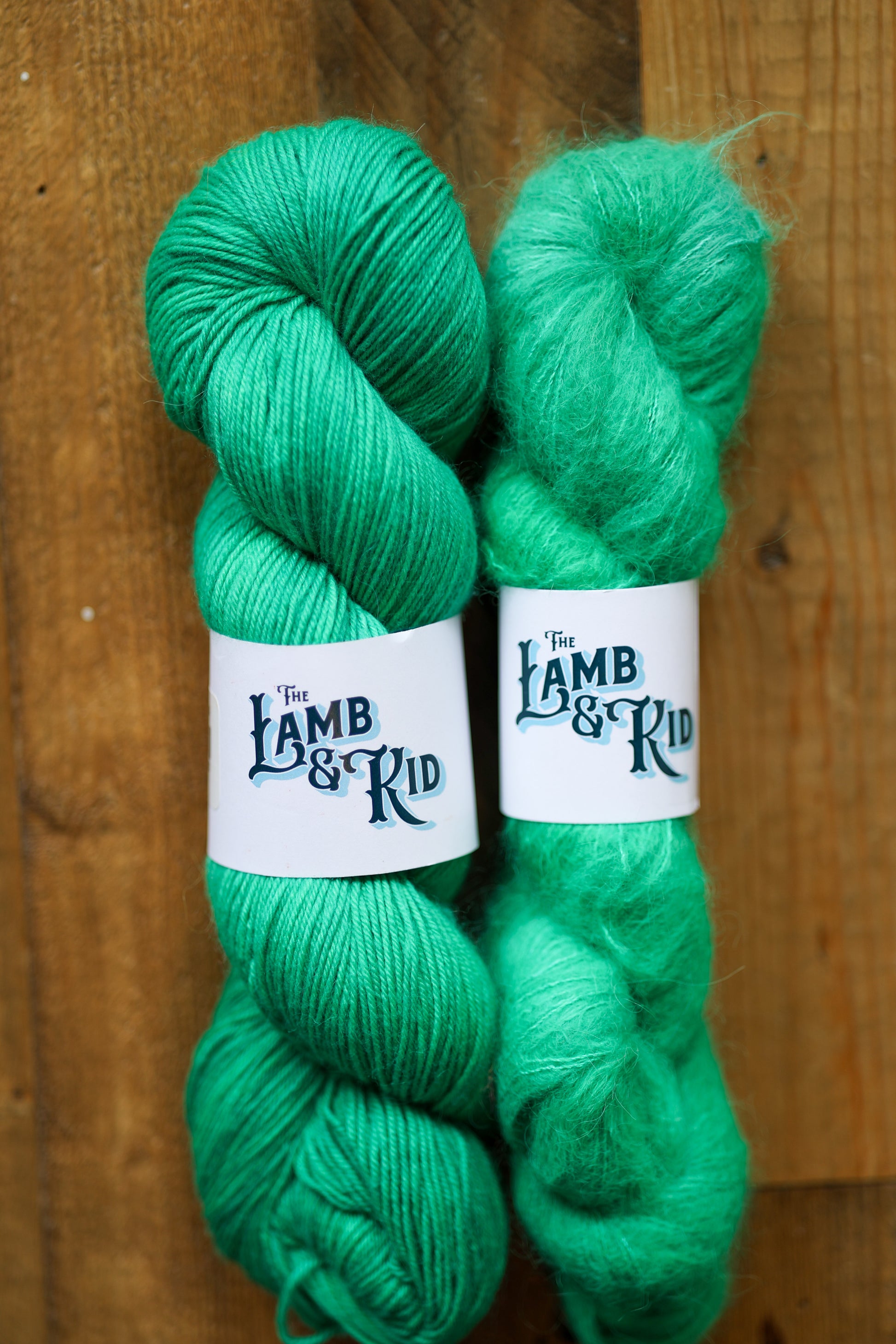 Mho Mho is made with the softest super kid mohair we could find blended with a touch of silk. We’re in love with the way it takes the dye—it has some serious glow! Knit held with other yarns it provides a translucent wash of color and a gorgeous halo of fluff.