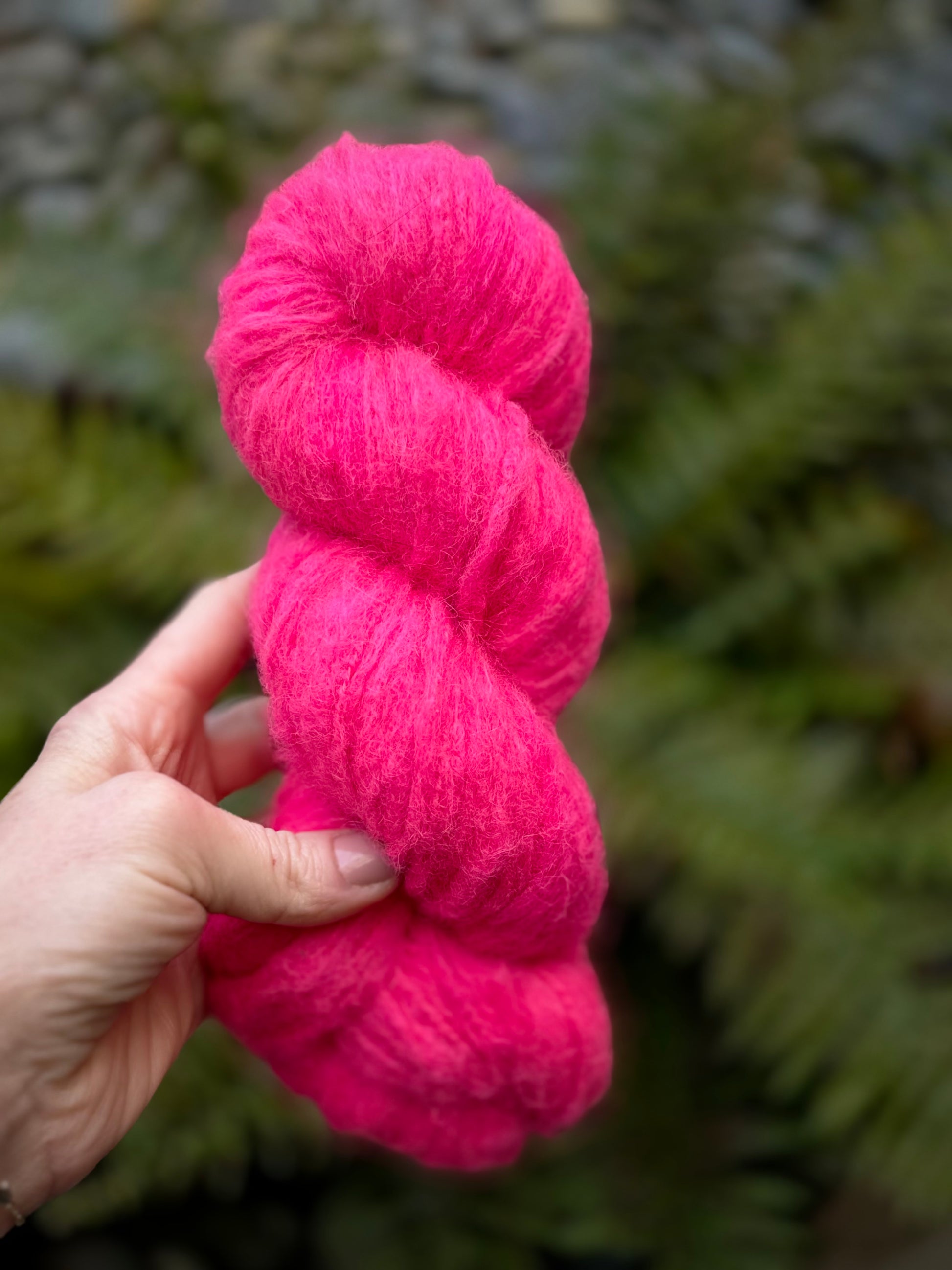 Big Birdie is our custom-milled alpaca/silk blend exclusive to The Lamb & Kid. This is an aran-weight shapeshifter—it can be knit down for a dense and luscious fabric or opened up for a light and airy one. This yarn makes perfectly fluffy sweaters, vests, and the coziest accessories.