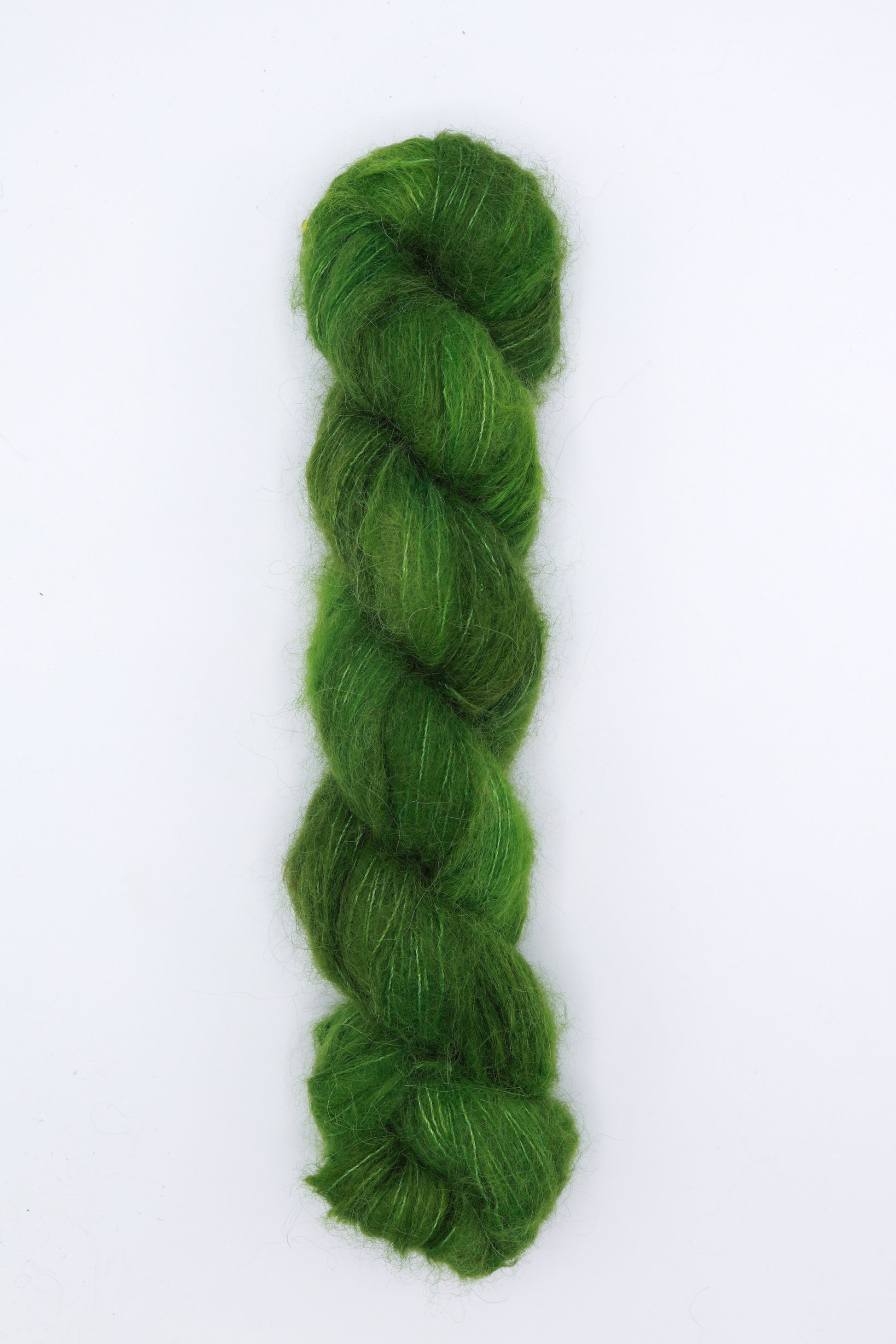 Birdie is known for its drape, this gorgeously soft baby suri alpaca yarn is blended with silk for strength. Birdie is the perfect alternative for those desiring a fluffy halo, but are allergic or sensitive to mohair. When held with another yarn, Birdie gives more opaque coverage than Mho Mho. Try it held single for a diaphanous effect, or doubled with itself, or another yarn, for more substance. To note: colors take slightly lighter to Birdie and its sisters, than to other bases.