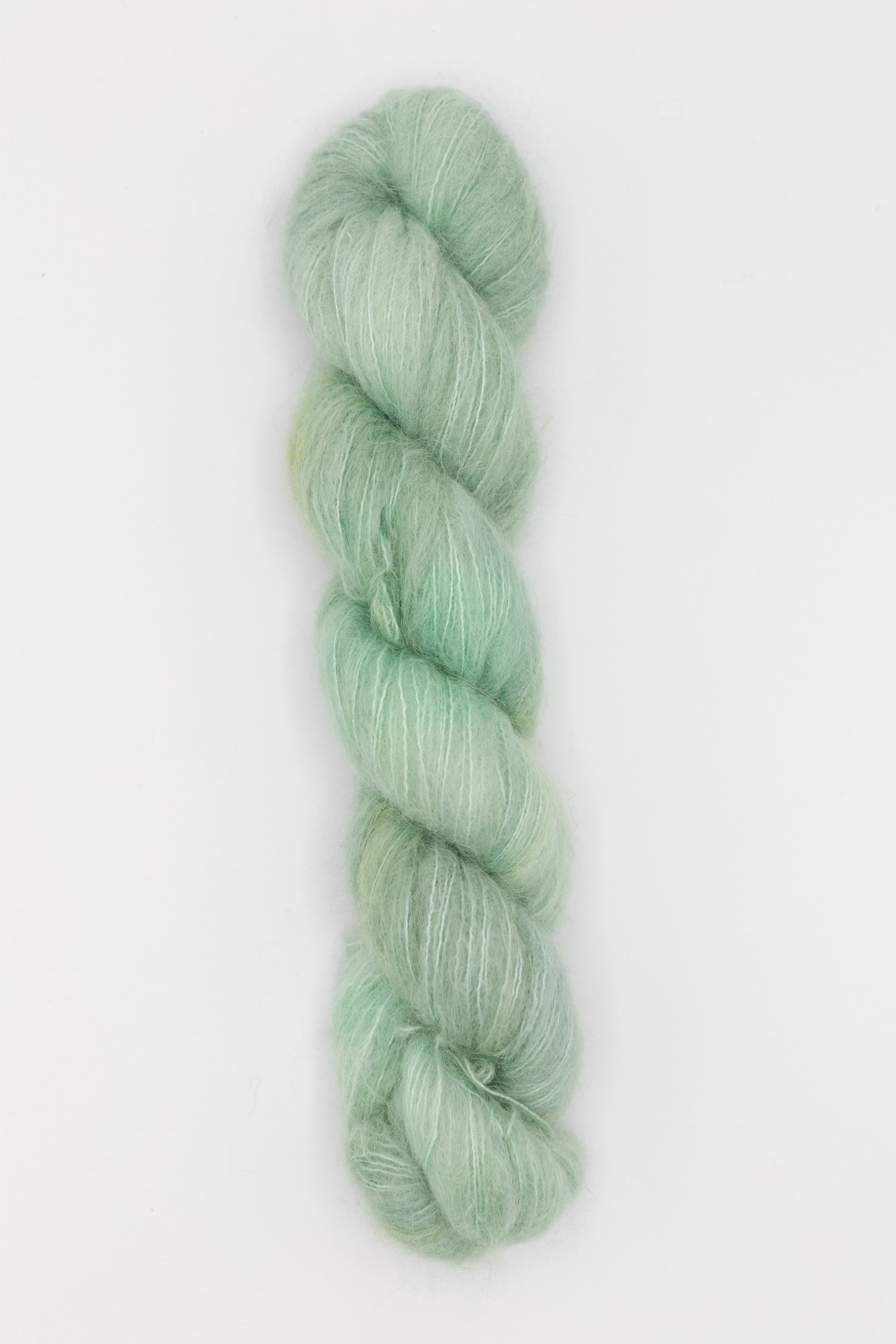 Birdie is known for its drape, this gorgeously soft baby suri alpaca yarn is blended with silk for strength. Birdie is the perfect alternative for those desiring a fluffy halo, but are allergic or sensitive to mohair. When held with another yarn, Birdie gives more opaque coverage than Mho Mho. Try it held single for a diaphanous effect, or doubled with itself, or another yarn, for more substance. To note: colors take slightly lighter to Birdie and its sisters, than to other bases.