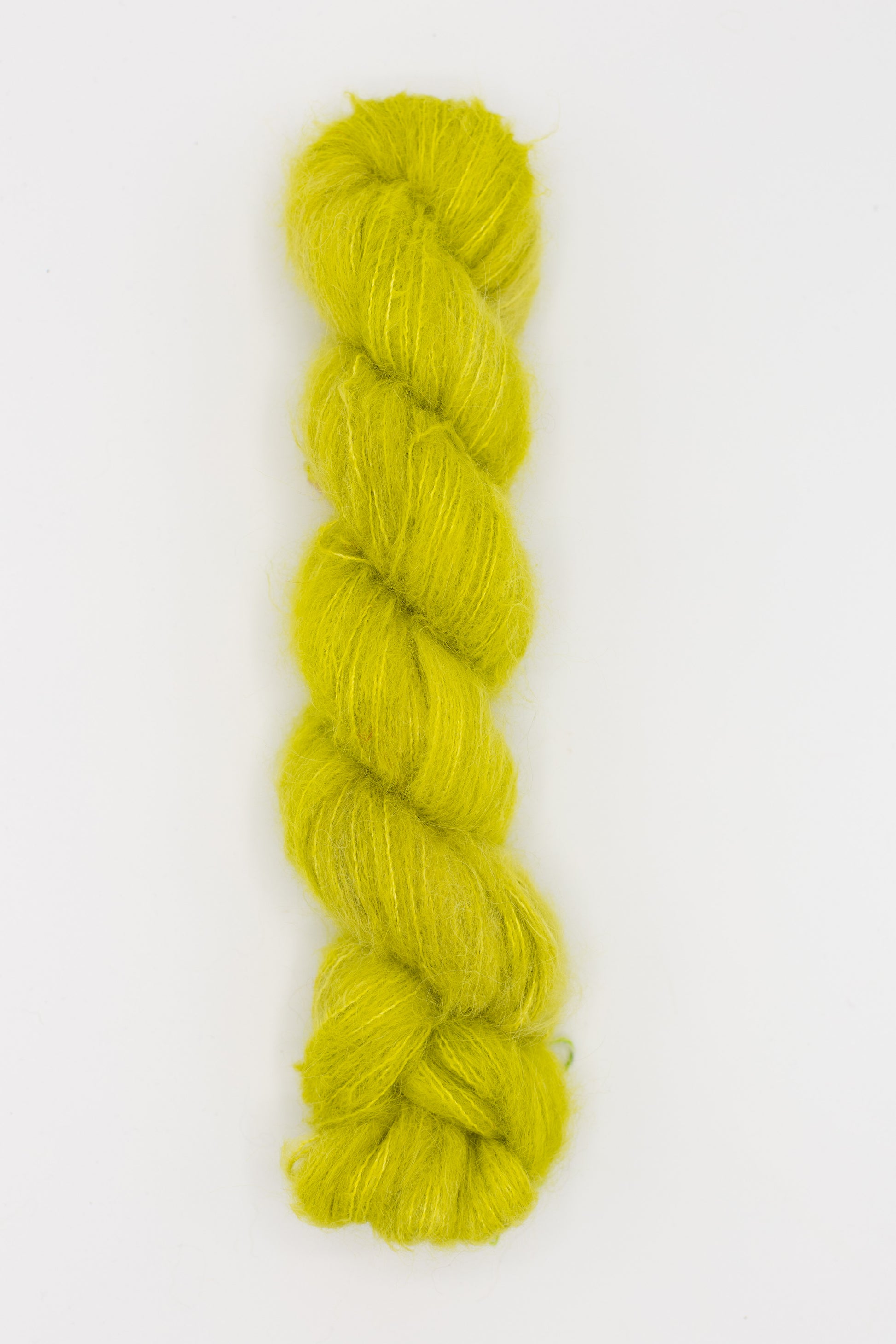 Birdie is known for its drape, this gorgeously soft baby suri alpaca yarn is blended with silk for strength. Birdie is the perfect alternative for those desiring a fluffy halo, but are allergic or sensitive to mohair. When held with another yarn, Birdie gives more opaque coverage than Mho Mho. Try it held single for a diaphanous effect, or doubled with itself, or another yarn, for more substance. To note: colors take slightly lighter to Birdie and its sisters, than to other bases.