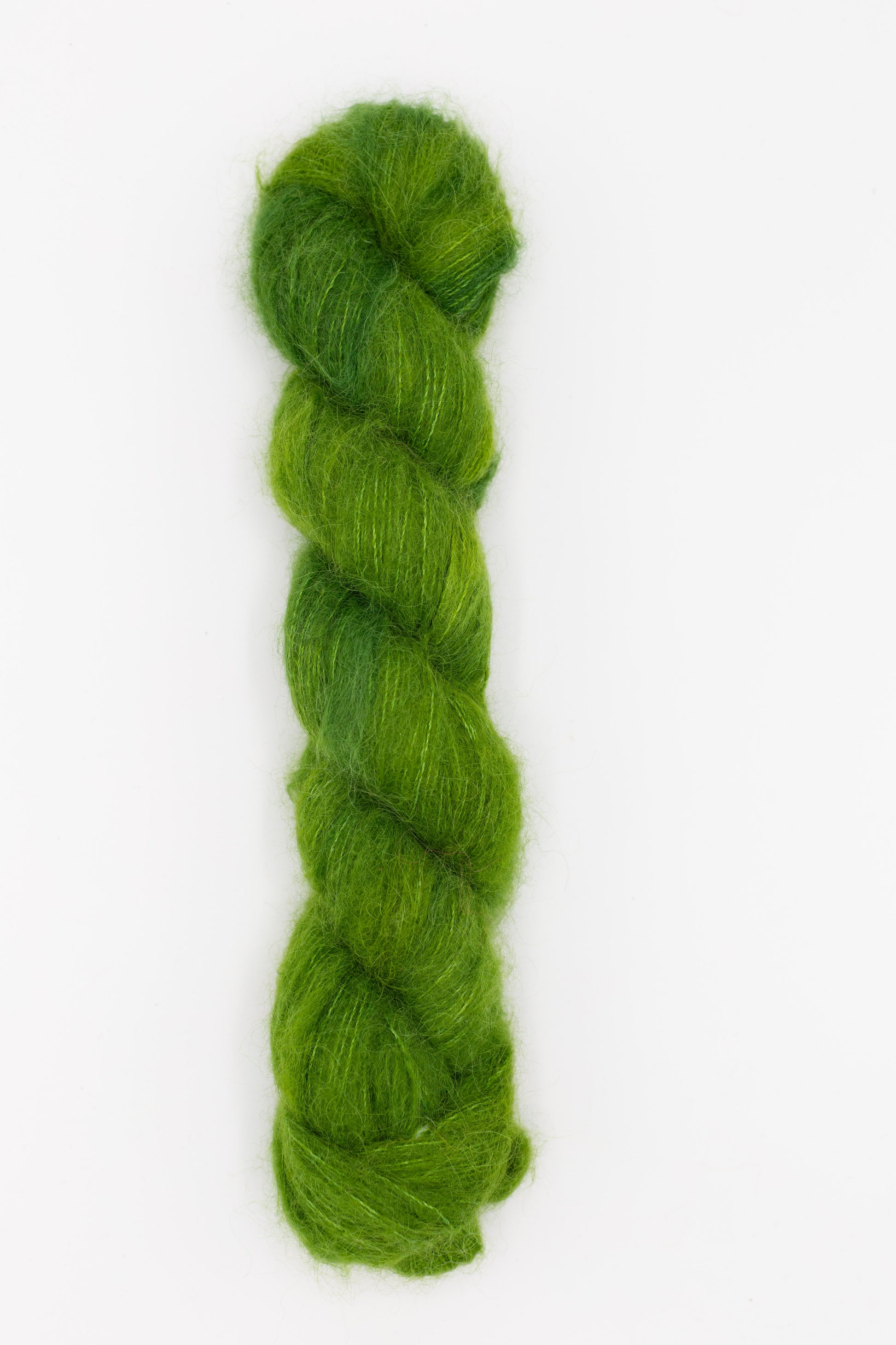 Birdie is known for its drape, this gorgeously soft baby suri alpaca yarn is blended with silk for strength. Birdie is the perfect alternative for those desiring a fluffy halo, but are allergic or sensitive to mohair. When held with another yarn, Birdie gives more opaque coverage than Mho Mho. Try it held single for a diaphanous effect, or doubled with itself, or another yarn, for more substance. To note: colors take slightly lighter to Birdie and its sisters, than to other bases.