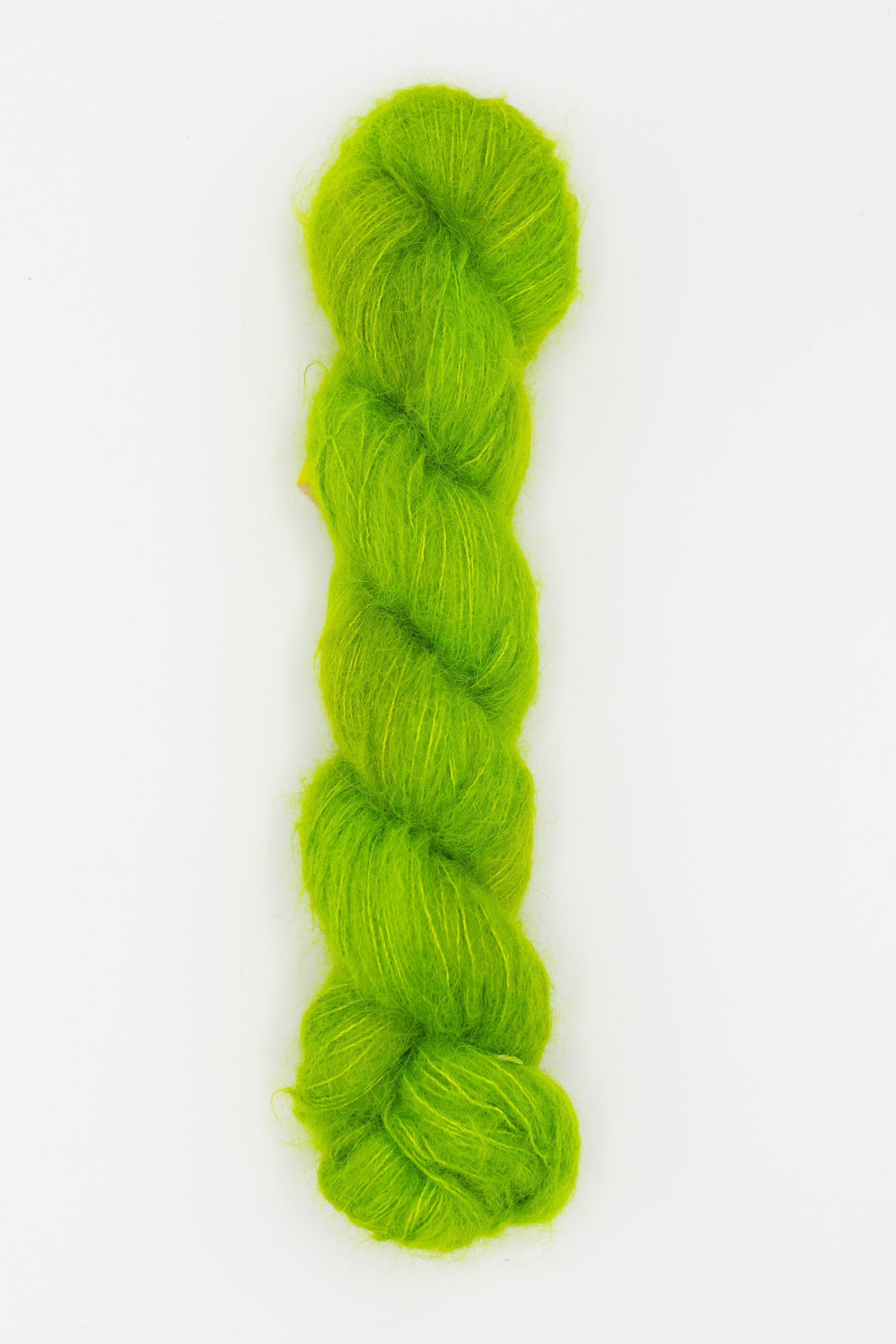 Birdie is known for its drape, this gorgeously soft baby suri alpaca yarn is blended with silk for strength. Birdie is the perfect alternative for those desiring a fluffy halo, but are allergic or sensitive to mohair. When held with another yarn, Birdie gives more opaque coverage than Mho Mho. Try it held single for a diaphanous effect, or doubled with itself, or another yarn, for more substance. To note: colors take slightly lighter to Birdie and its sisters, than to other bases.