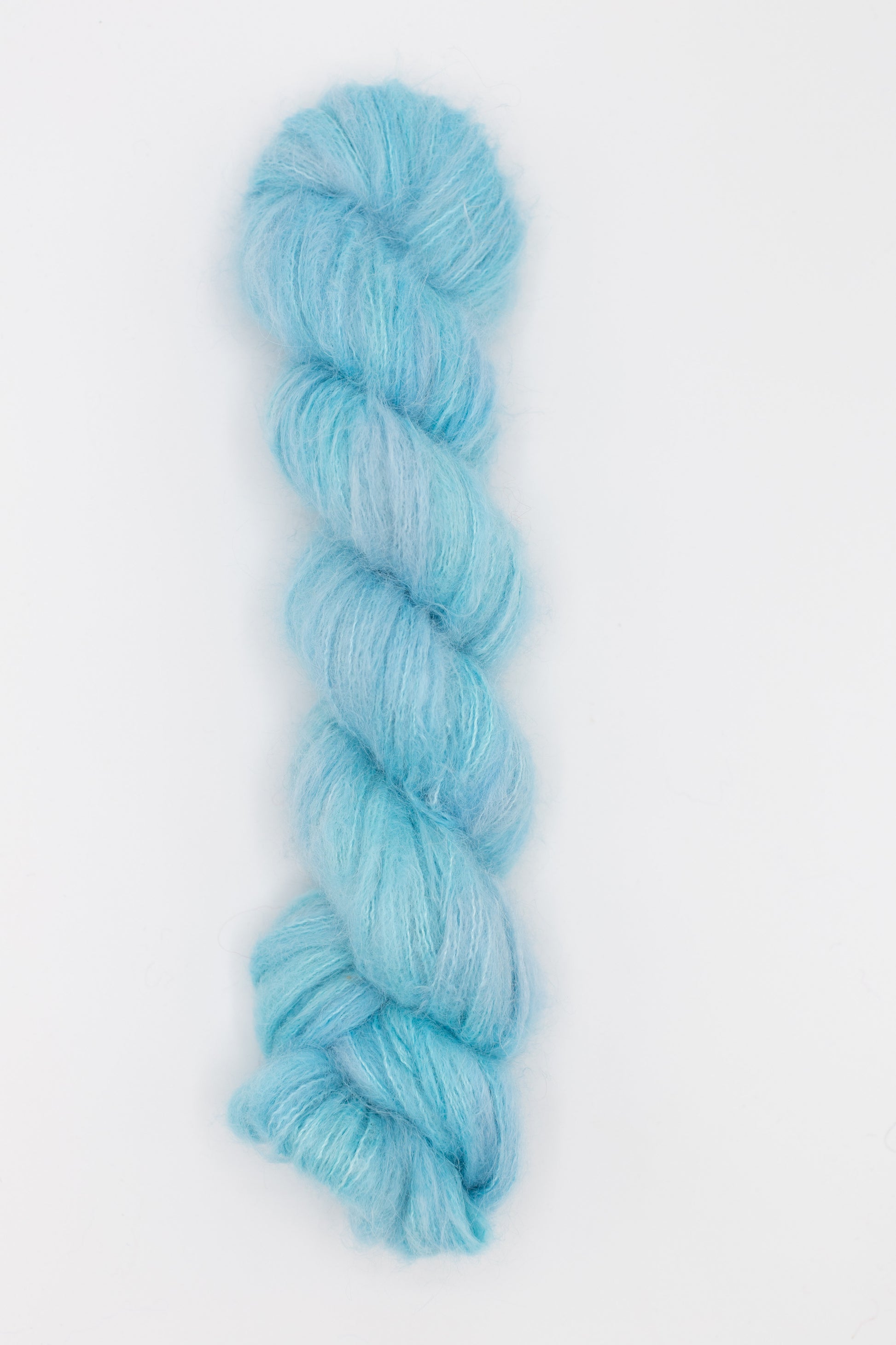 Birdie is known for its drape, this gorgeously soft baby suri alpaca yarn is blended with silk for strength. Birdie is the perfect alternative for those desiring a fluffy halo, but are allergic or sensitive to mohair. When held with another yarn, Birdie gives more opaque coverage than Mho Mho. Try it held single for a diaphanous effect, or doubled with itself, or another yarn, for more substance. To note: colors take slightly lighter to Birdie and its sisters, than to other bases.
