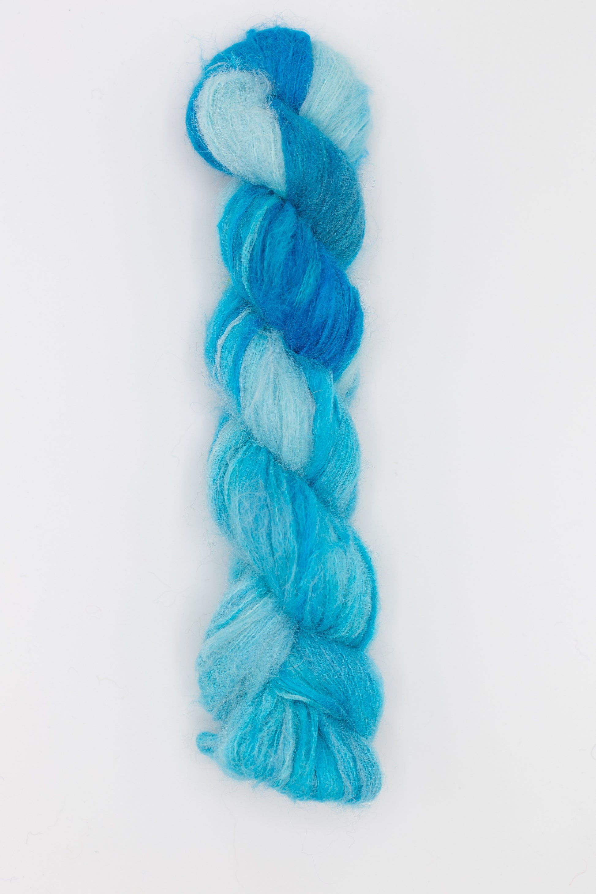Birdie is known for its drape, this gorgeously soft baby suri alpaca yarn is blended with silk for strength. Birdie is the perfect alternative for those desiring a fluffy halo, but are allergic or sensitive to mohair. When held with another yarn, Birdie gives more opaque coverage than Mho Mho. Try it held single for a diaphanous effect, or doubled with itself, or another yarn, for more substance. To note: colors take slightly lighter to Birdie and its sisters, than to other bases.