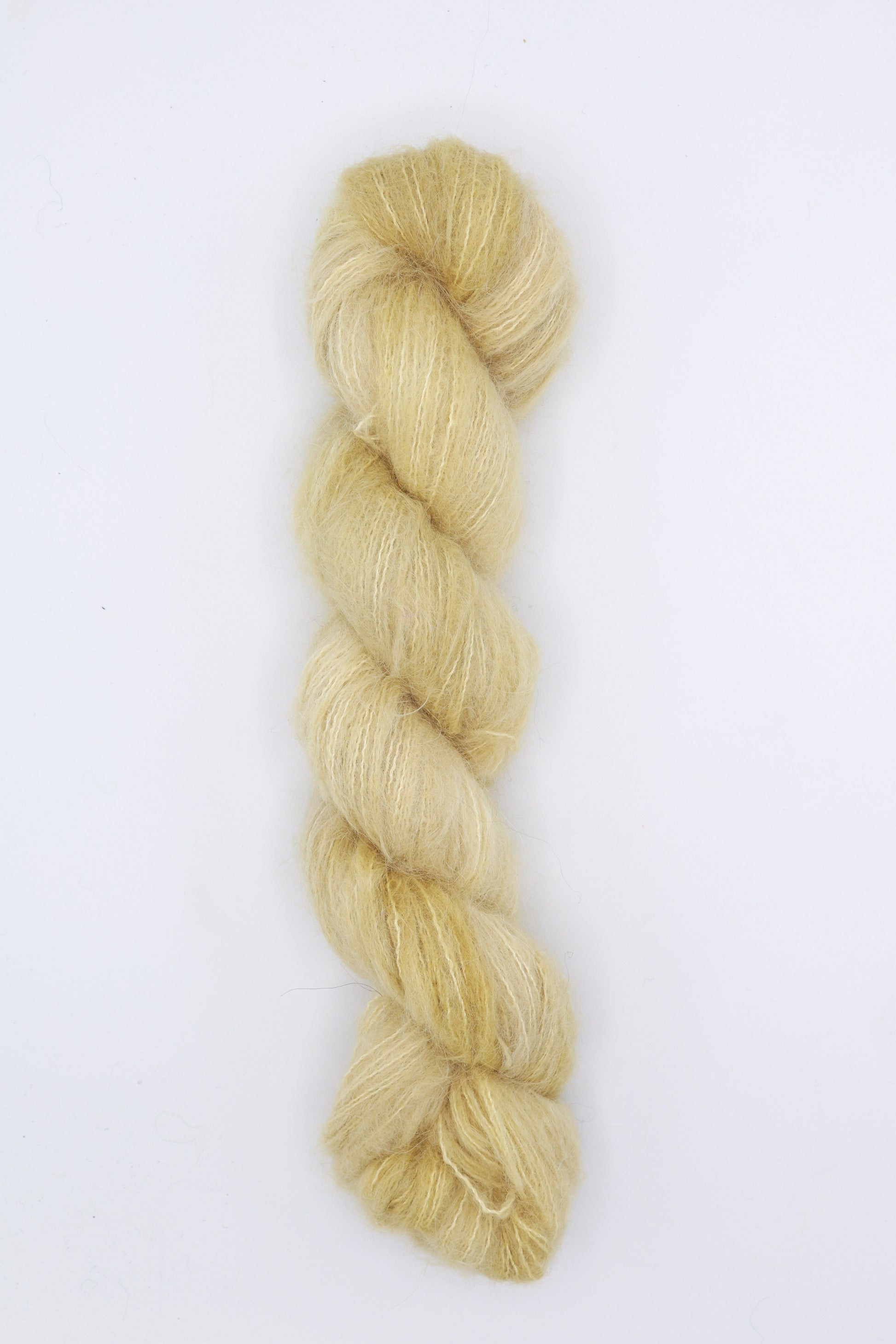 Birdie is known for its drape, this gorgeously soft baby suri alpaca yarn is blended with silk for strength. Birdie is the perfect alternative for those desiring a fluffy halo, but are allergic or sensitive to mohair. When held with another yarn, Birdie gives more opaque coverage than Mho Mho. Try it held single for a diaphanous effect, or doubled with itself, or another yarn, for more substance. To note: colors take slightly lighter to Birdie and its sisters, than to other bases.