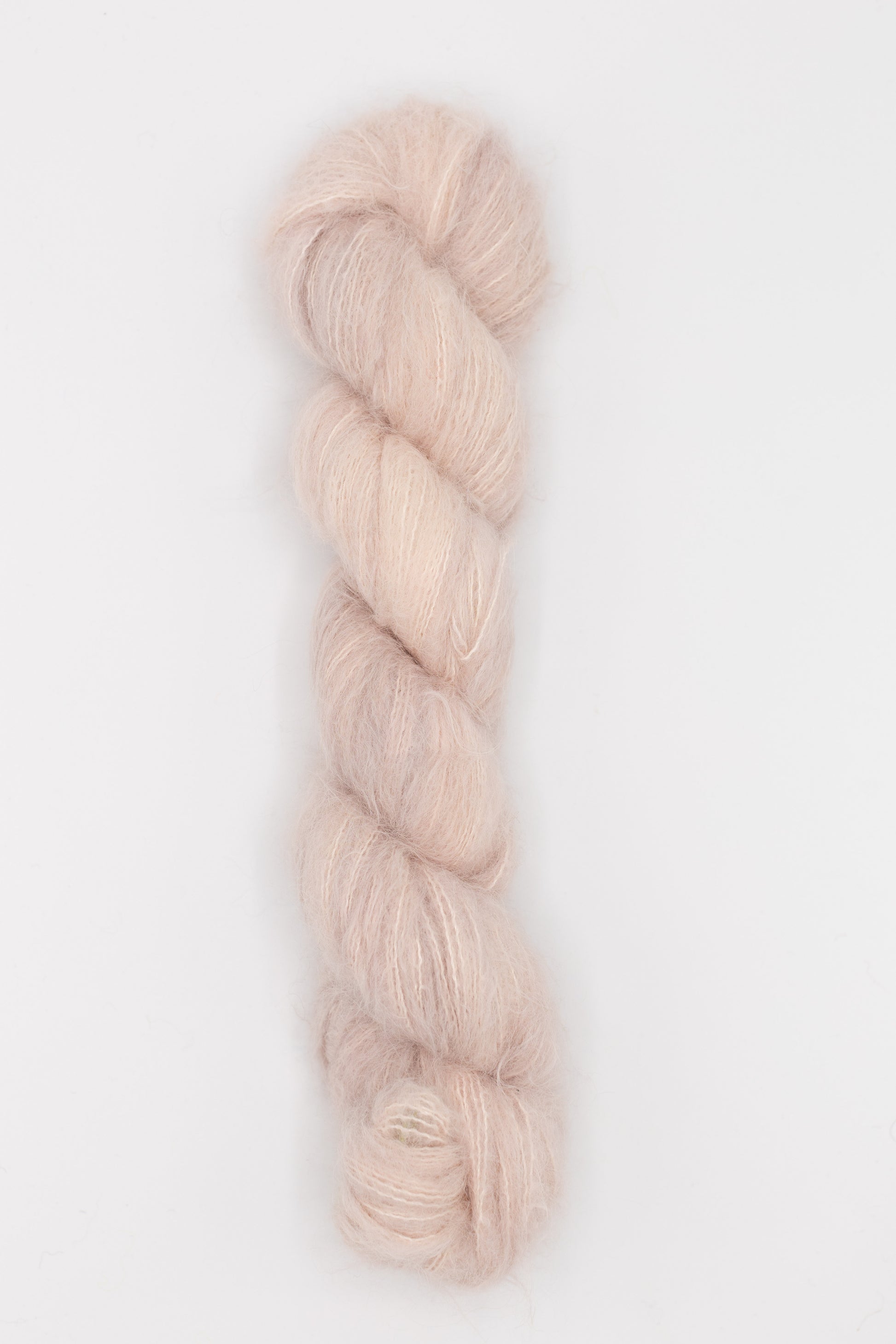 Birdie is known for its drape, this gorgeously soft baby suri alpaca yarn is blended with silk for strength. Birdie is the perfect alternative for those desiring a fluffy halo, but are allergic or sensitive to mohair. When held with another yarn, Birdie gives more opaque coverage than Mho Mho. Try it held single for a diaphanous effect, or doubled with itself, or another yarn, for more substance. To note: colors take slightly lighter to Birdie and its sisters, than to other bases.