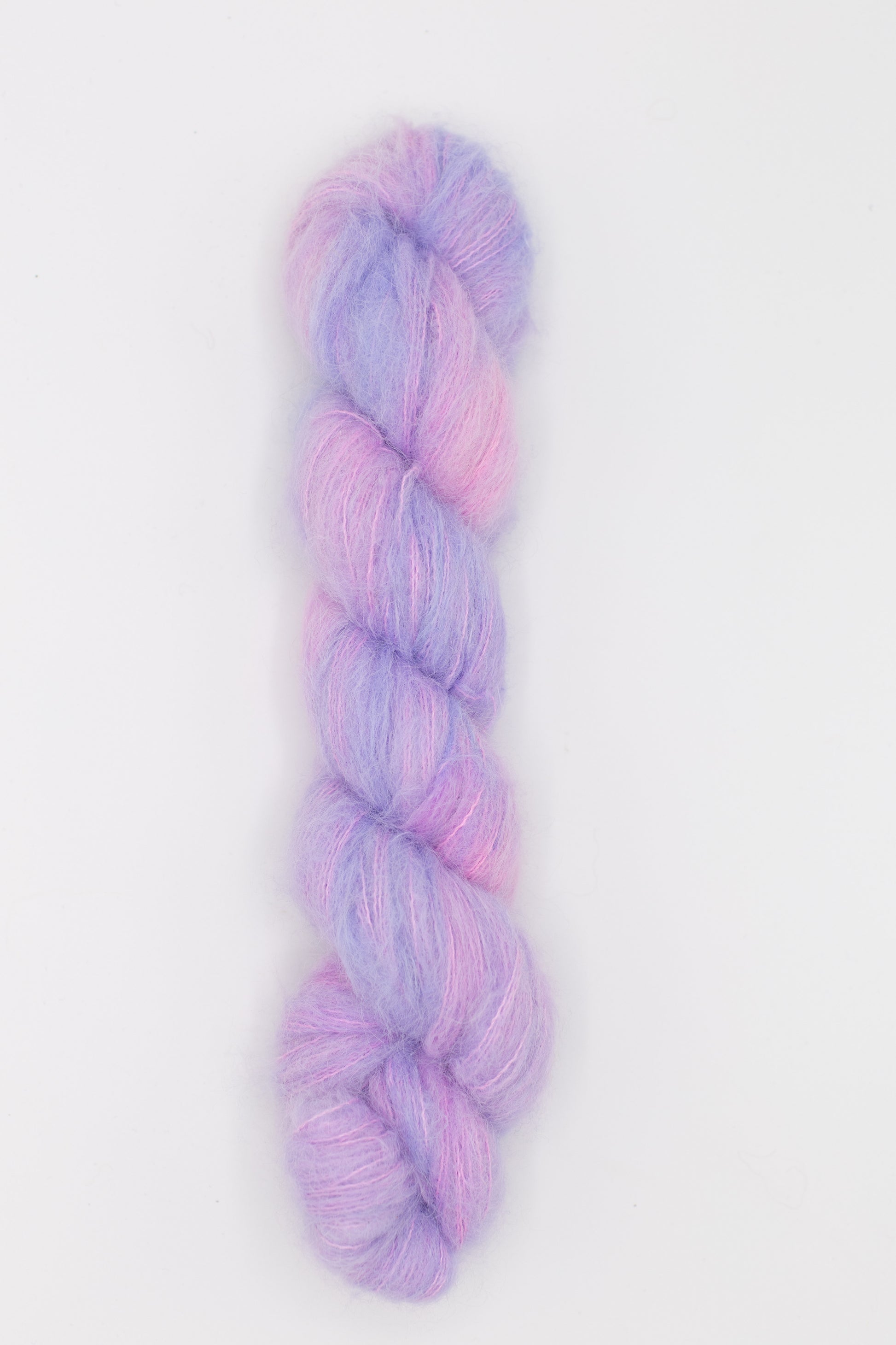 Birdie is known for its drape, this gorgeously soft baby suri alpaca yarn is blended with silk for strength. Birdie is the perfect alternative for those desiring a fluffy halo, but are allergic or sensitive to mohair. When held with another yarn, Birdie gives more opaque coverage than Mho Mho. Try it held single for a diaphanous effect, or doubled with itself, or another yarn, for more substance. To note: colors take slightly lighter to Birdie and its sisters, than to other bases.