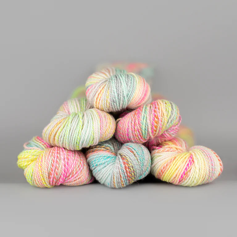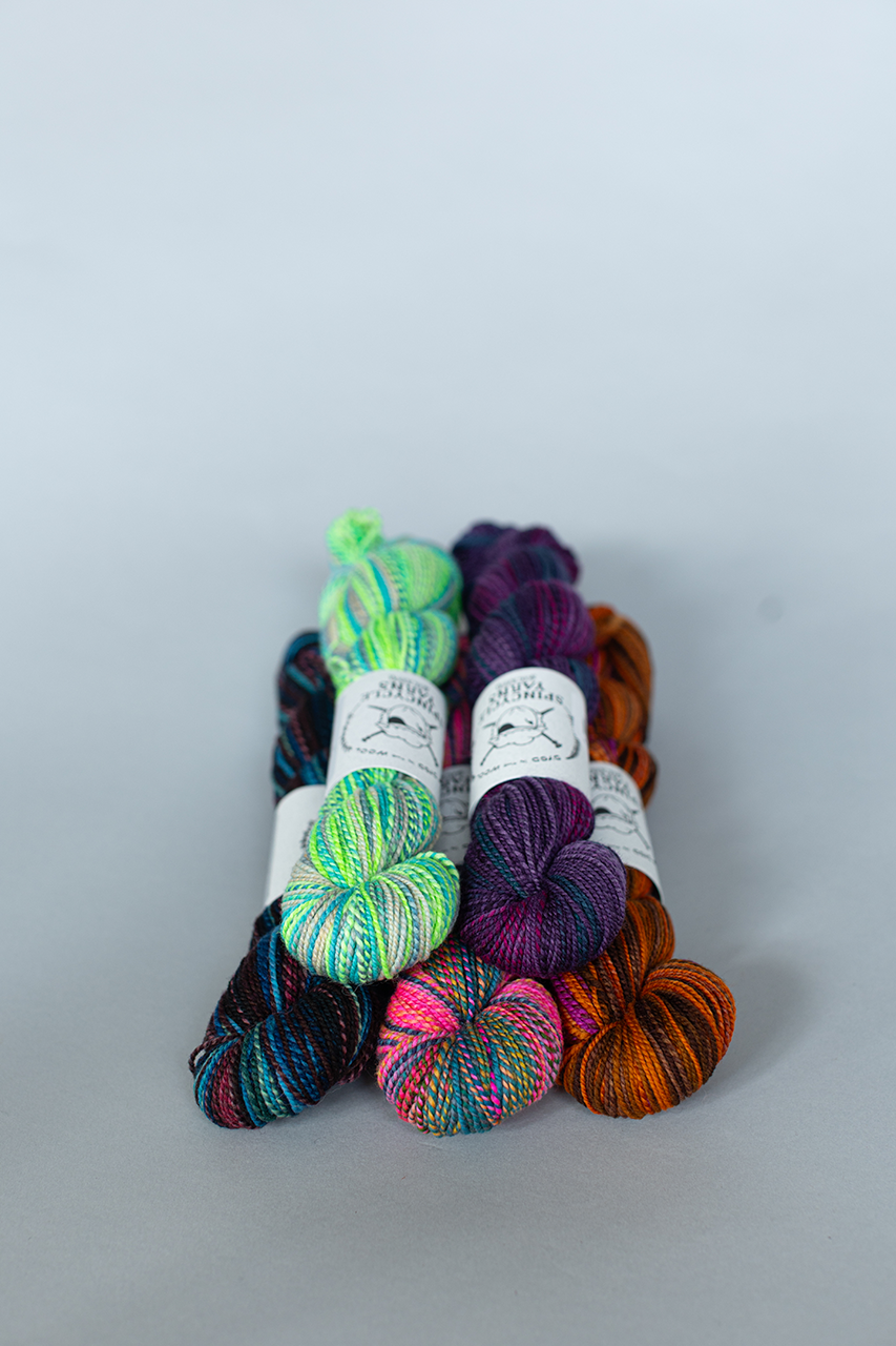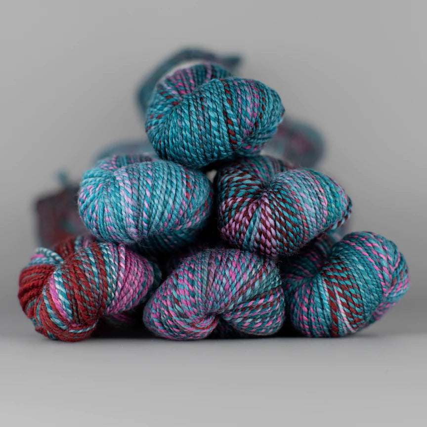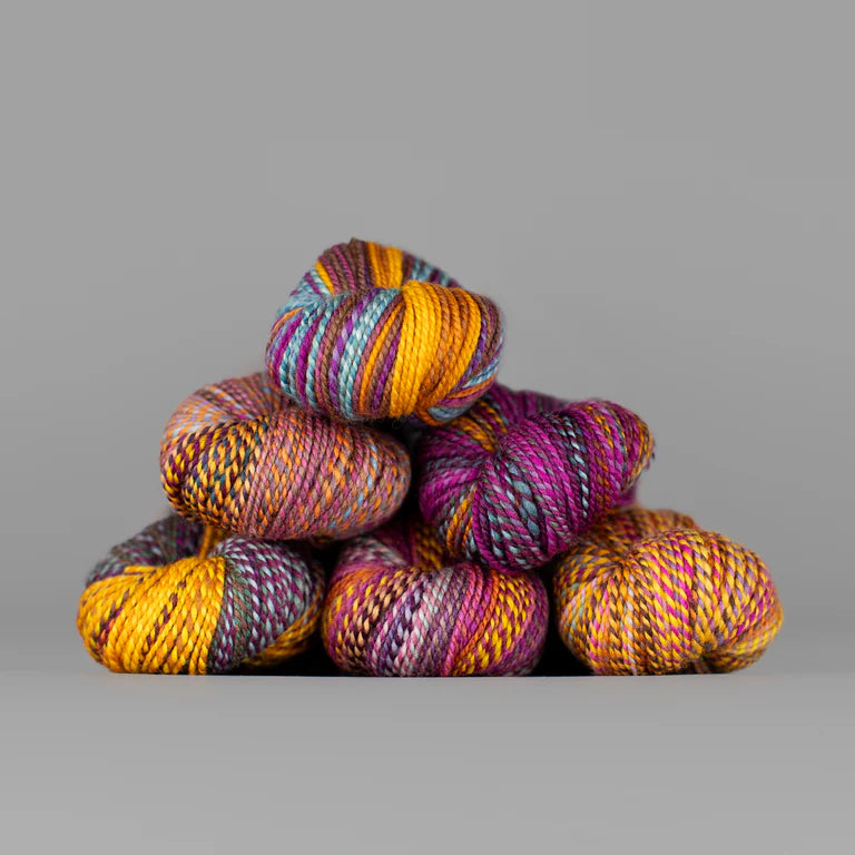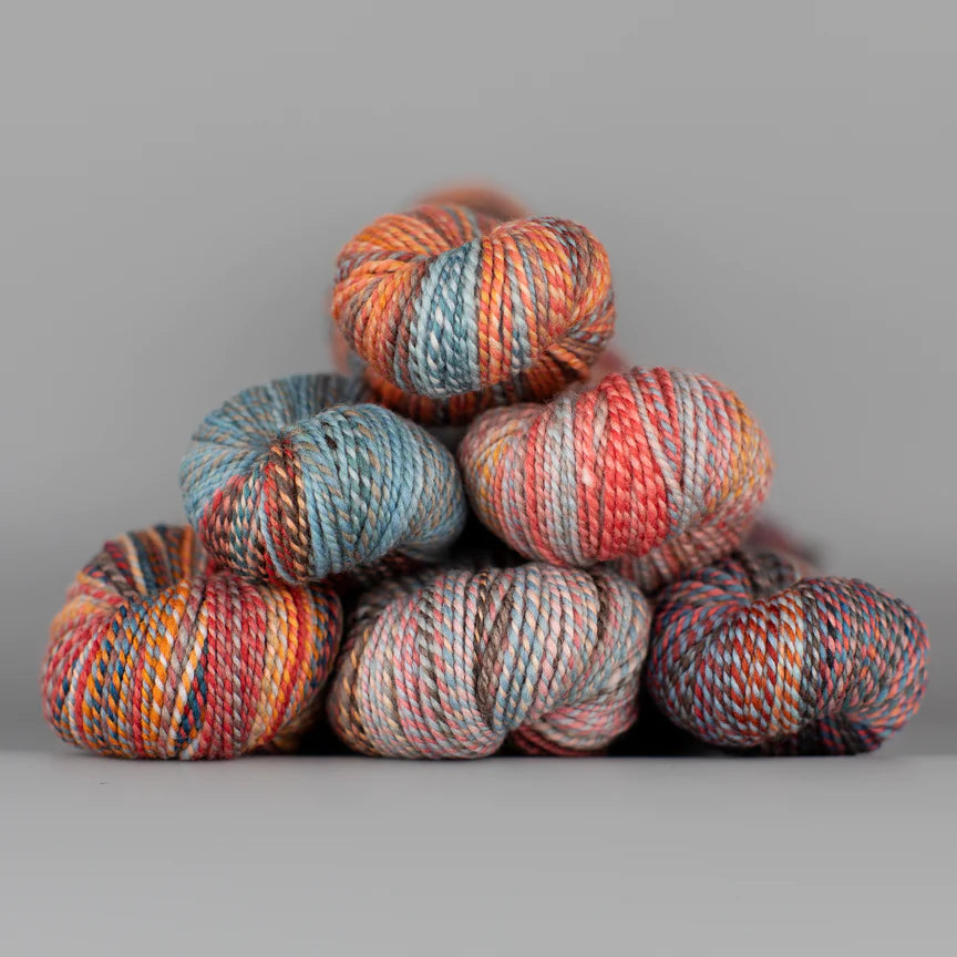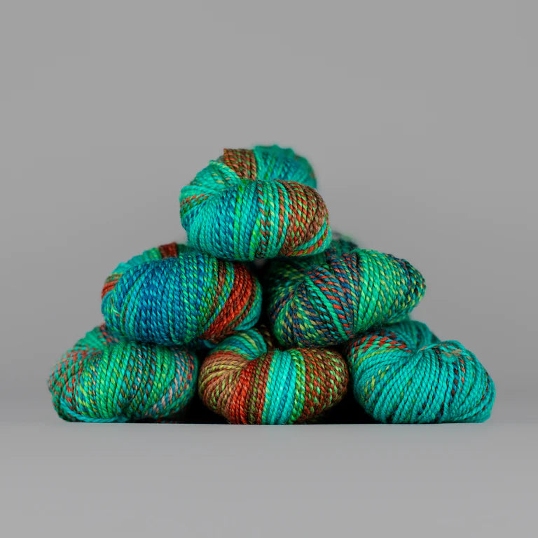 You will receive a skein from this colorway, but not the exact skein pictured. • Due to our “dyed in the wool” process, each skein we produce is unique, even within a dyelot. • If you have specific color preferences, please leave a note in the box at checkout. • We recommend buying your entire yardage requirement for your project in the same transaction, so that we can hand select skeins that match.