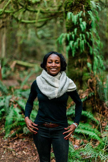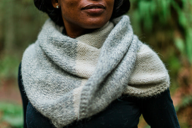 Fancy That is knit side to side, making the size easy to customize. Elmer Fingering and Birdie are marled together in this shawl. The resulting fabric is soft and cozy, and that’s just the beginning of why we love this pattern. Designing the Fancy That Shawl was wonderful, but just wait till you get it on your needles and make it your own!