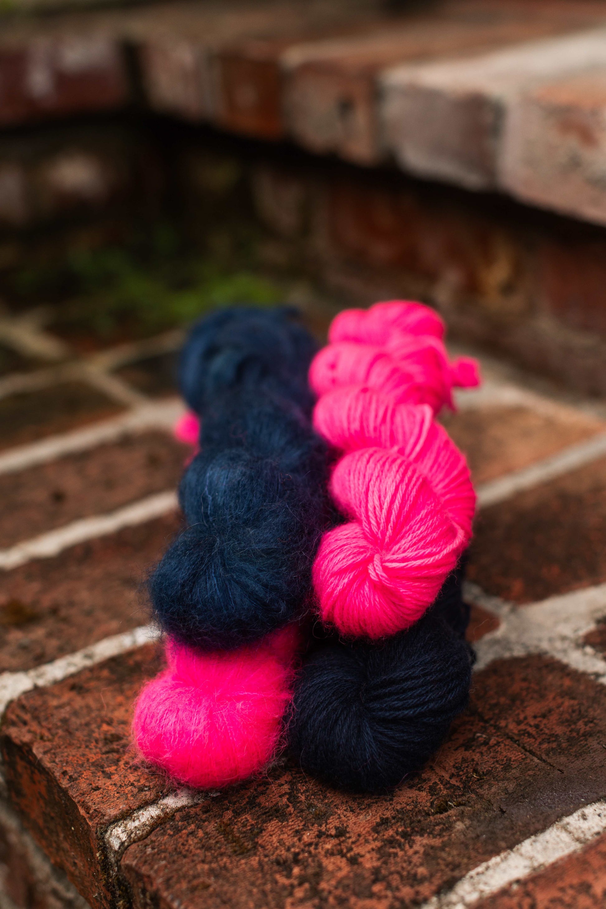 Mho Mho is made with the softest super kid mohair we could find blended with a touch of silk. We’re in love with the way it takes the dye—it has some serious glow! Knit held with other yarns it provides a translucent wash of color and a gorgeous halo of fluff.