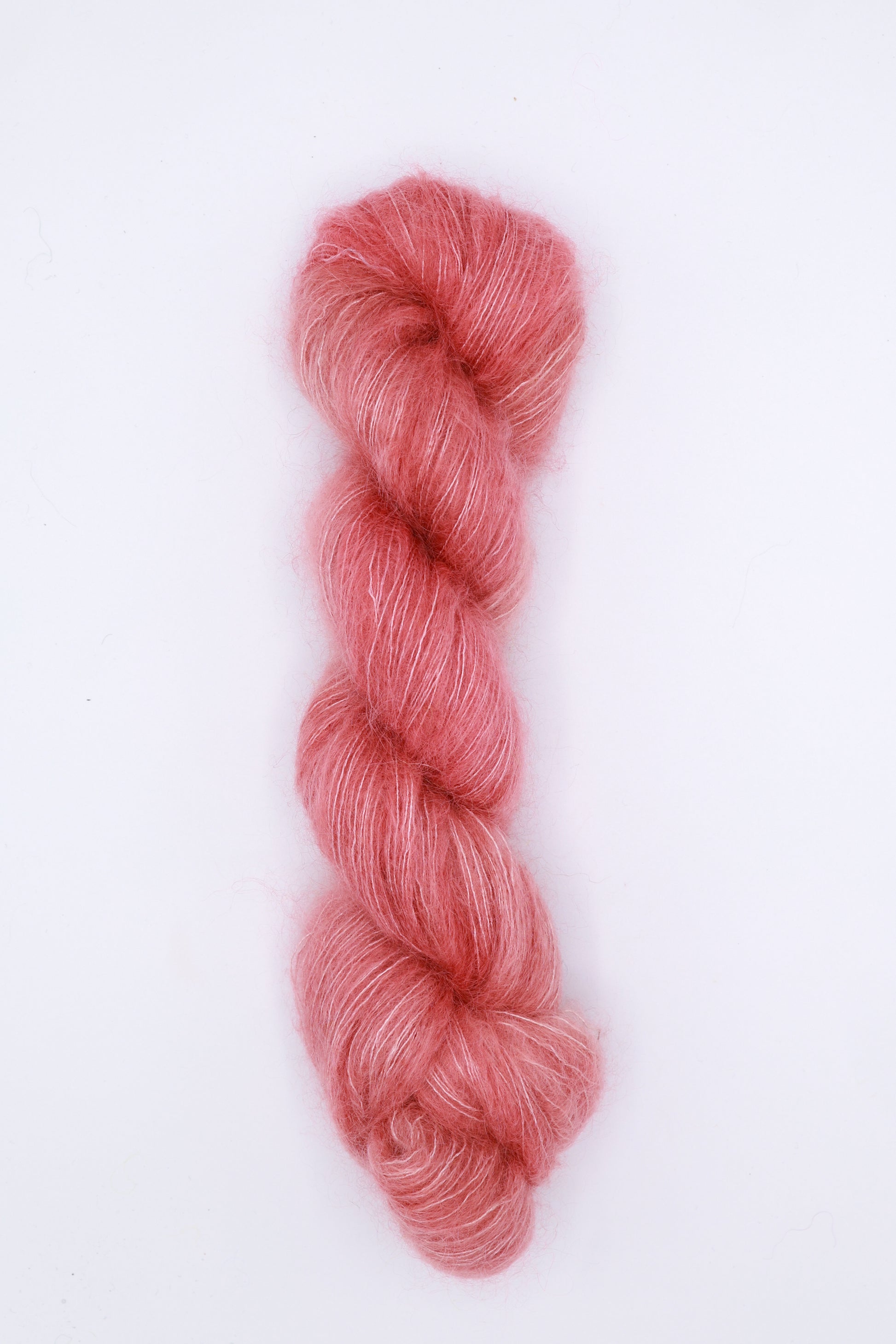 Mho Mho is made with the softest super kid mohair we could find blended with a touch of silk. We’re in love with the way it takes the dye—it has some serious glow! Knit held with other yarns it provides a translucent wash of color and a gorgeous halo of fluff.