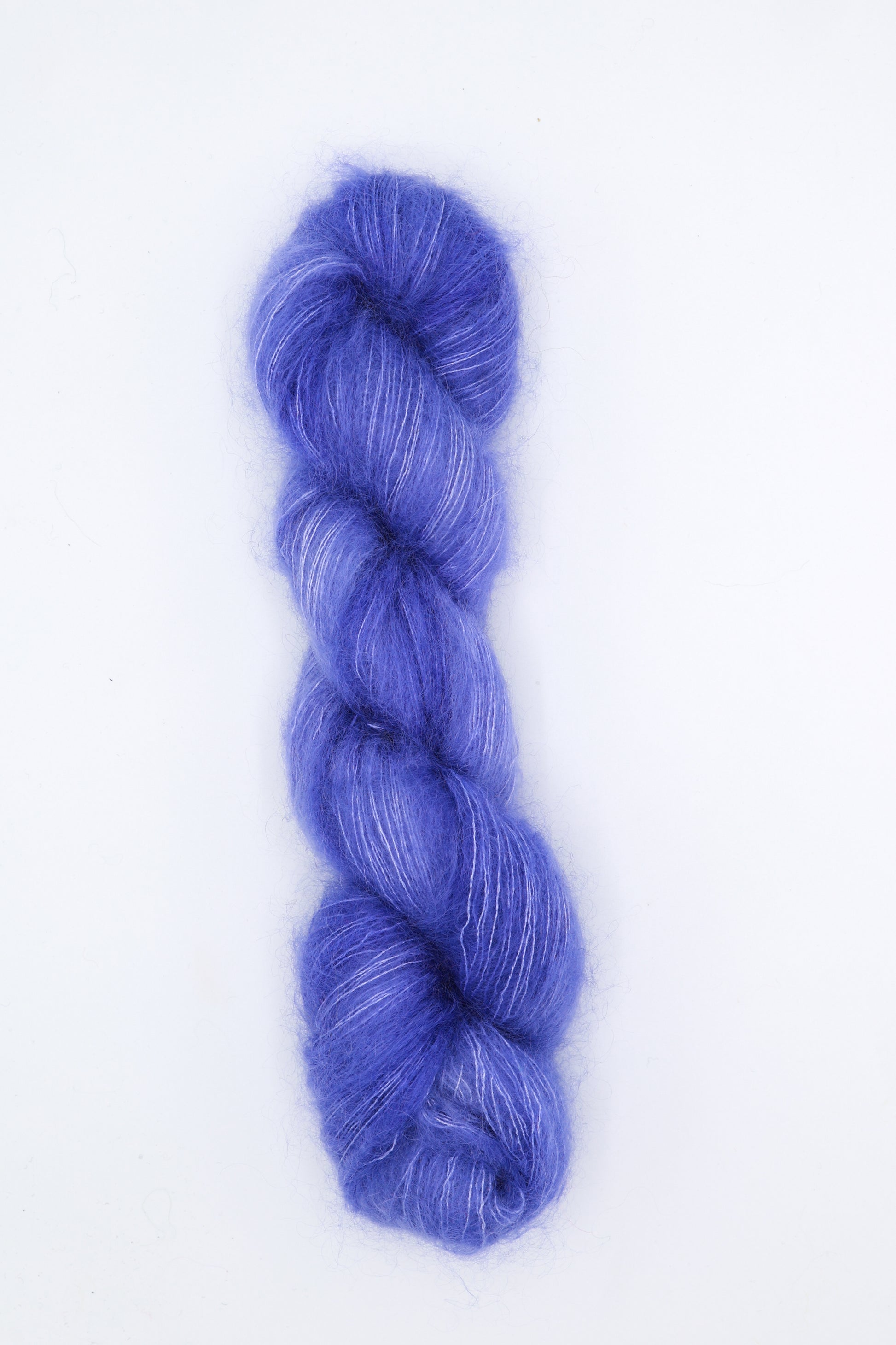 Mho Mho is made with the softest super kid mohair we could find blended with a touch of silk. We’re in love with the way it takes the dye—it has some serious glow! Knit held with other yarns it provides a translucent wash of color and a gorgeous halo of fluff.