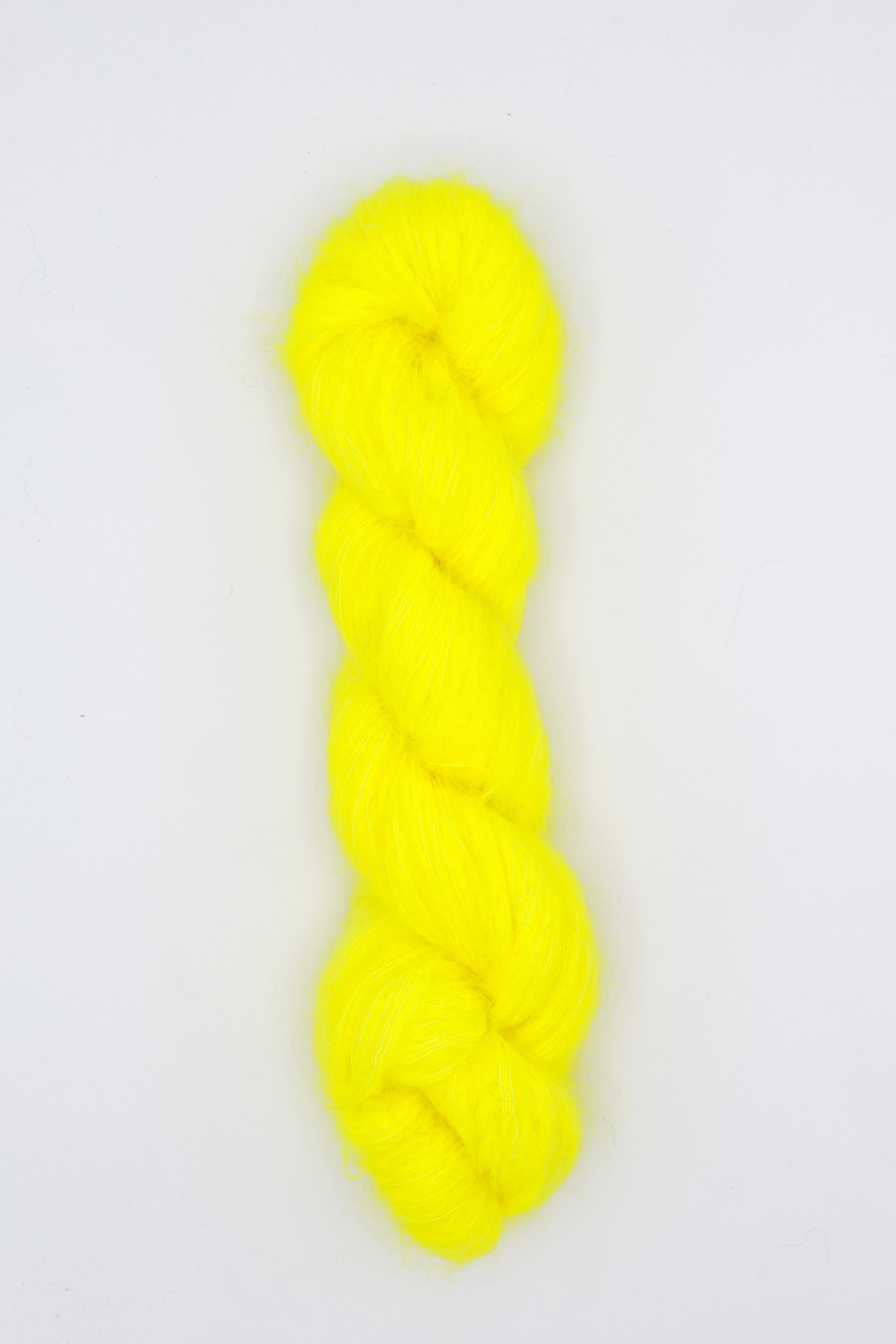 Mho Mho is made with the softest super kid mohair we could find blended with a touch of silk. We’re in love with the way it takes the dye—it has some serious glow! Knit held with other yarns it provides a translucent wash of color and a gorgeous halo of fluff.