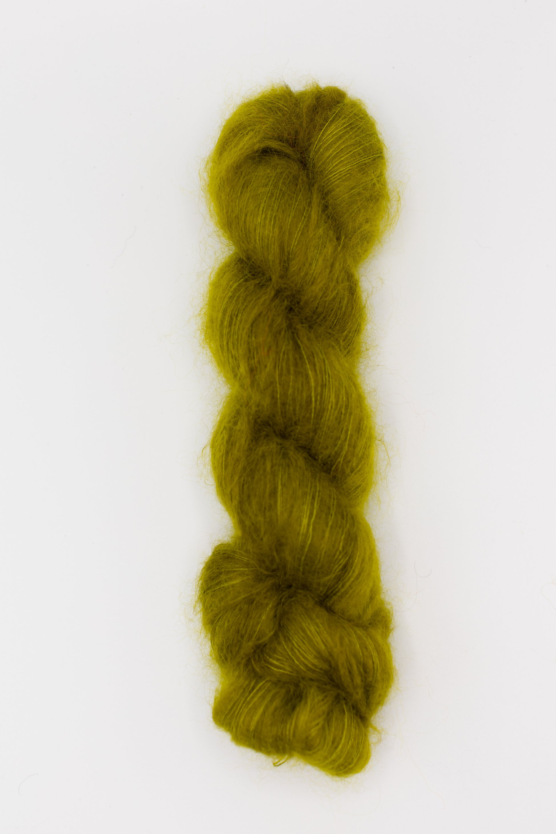 Mho Mho is made with the softest super kid mohair we could find blended with a touch of silk. We’re in love with the way it takes the dye—it has some serious glow! Knit held with other yarns it provides a translucent wash of color and a gorgeous halo of fluff.