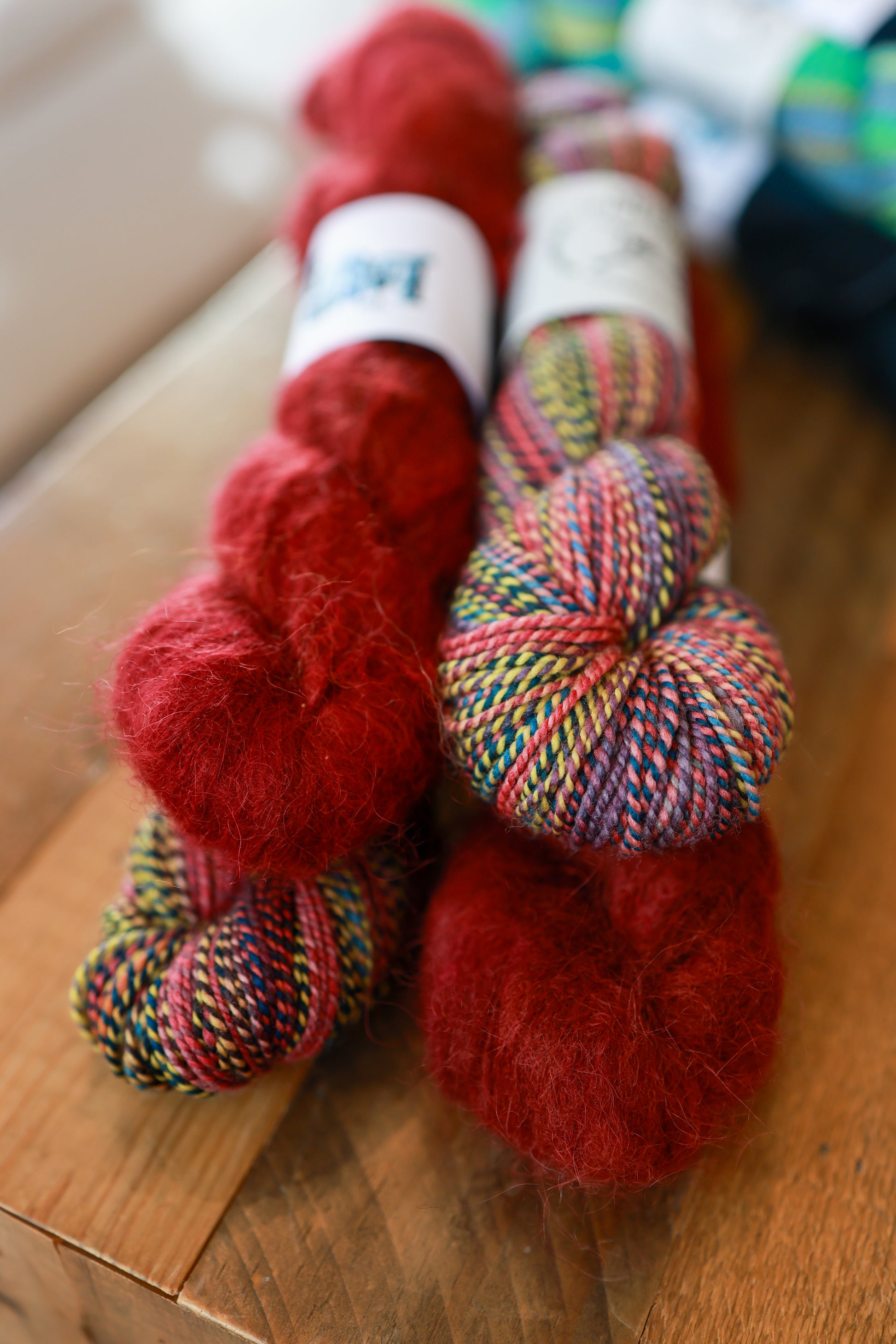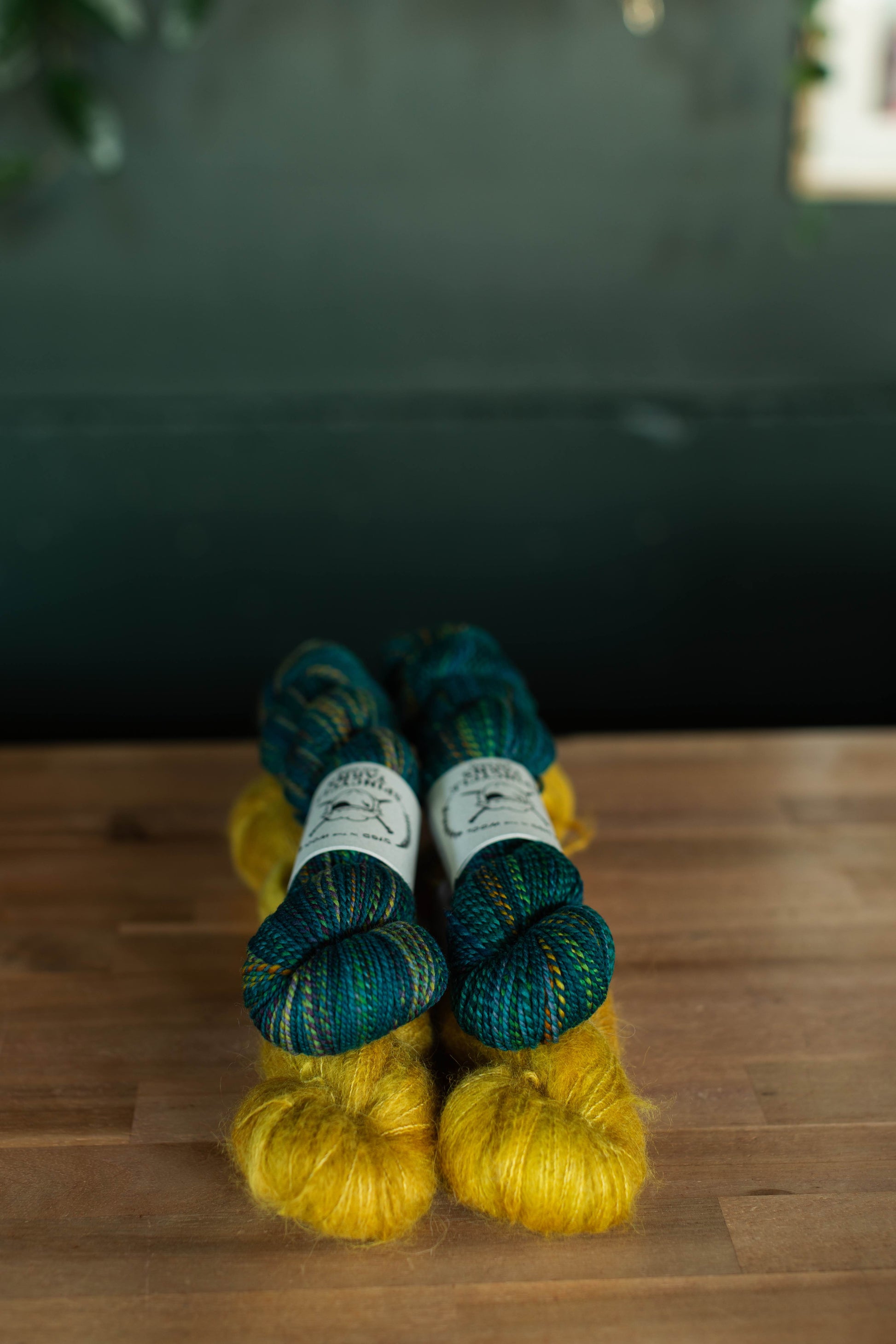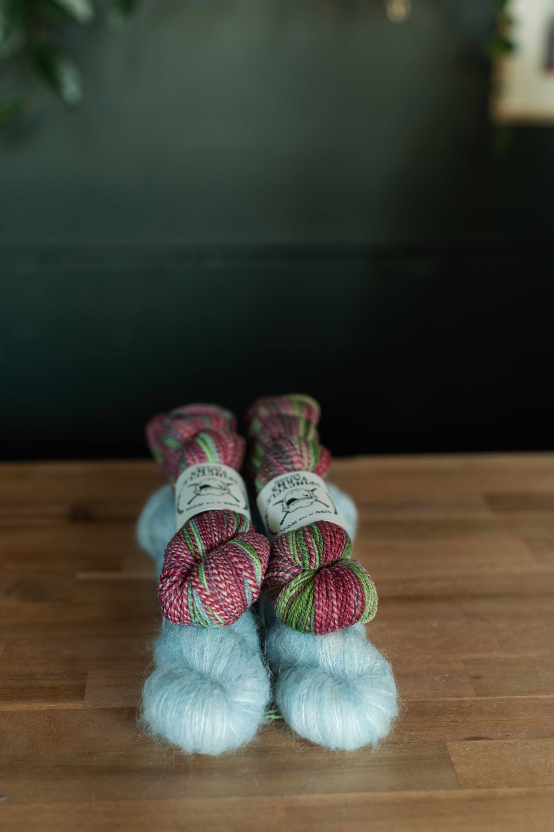 Kits include 2 skeins of Spincycle Dyed In The Wool and 2 skeins of Birdie. Yarn ordered this weekend will ship starting the week of November 10.