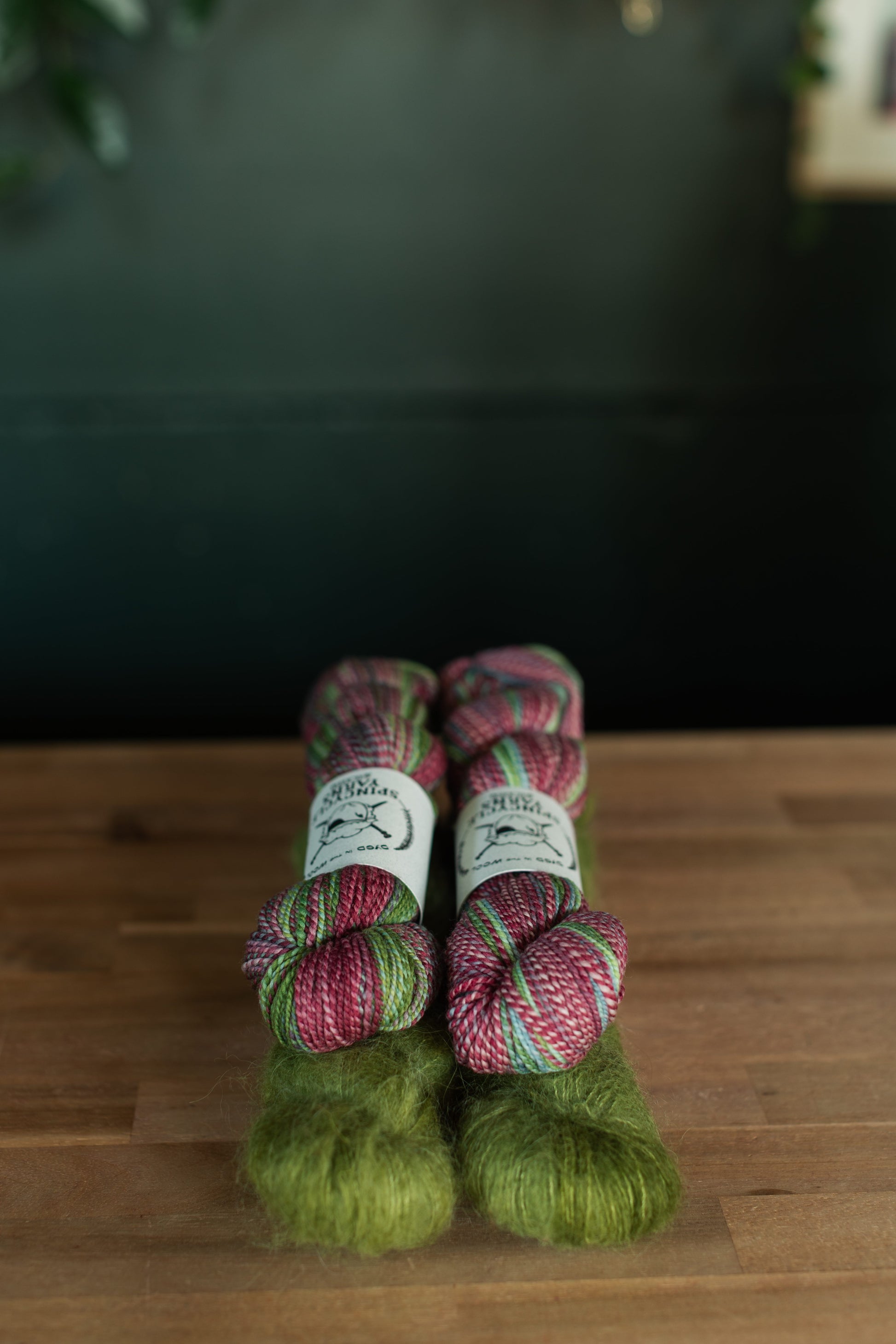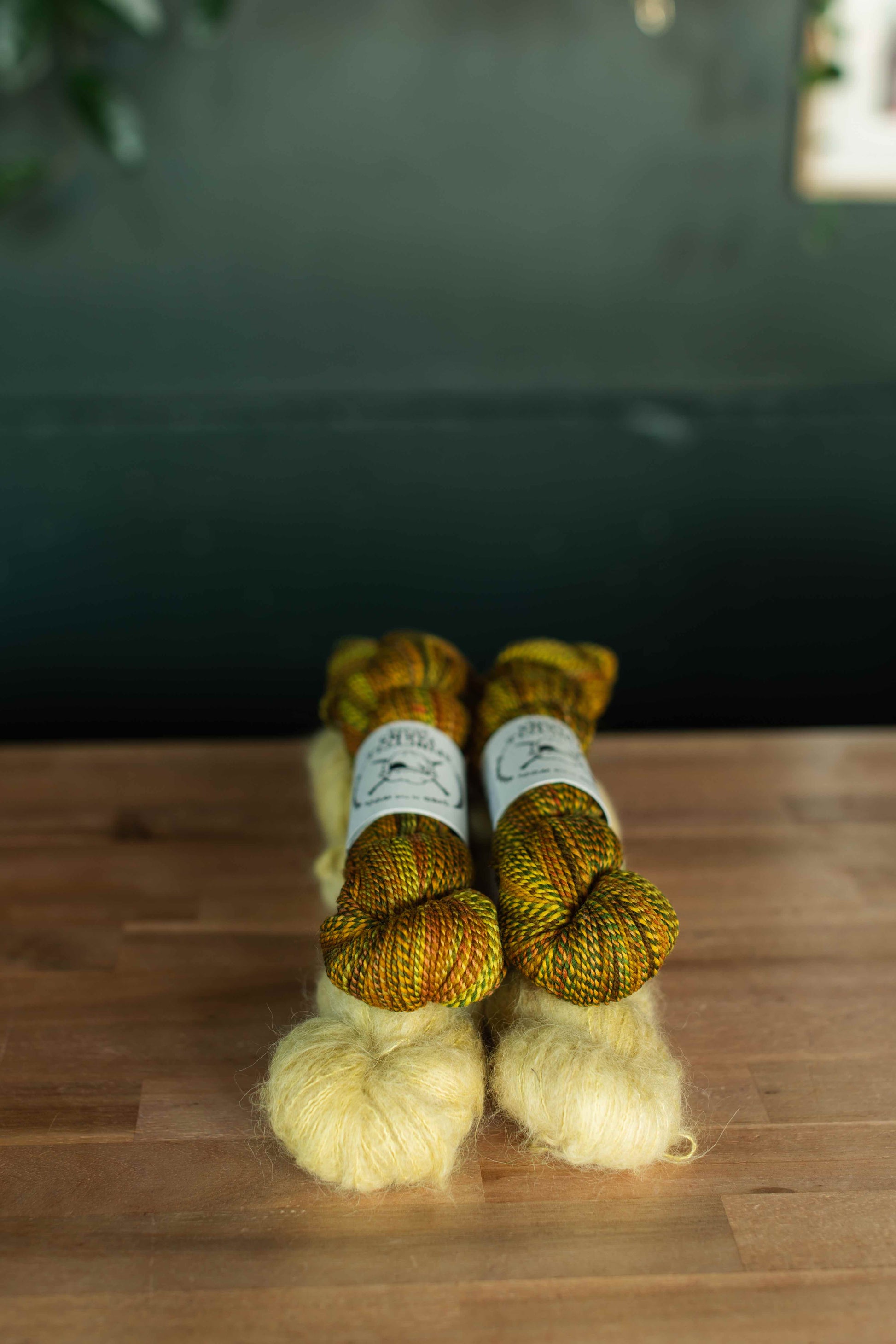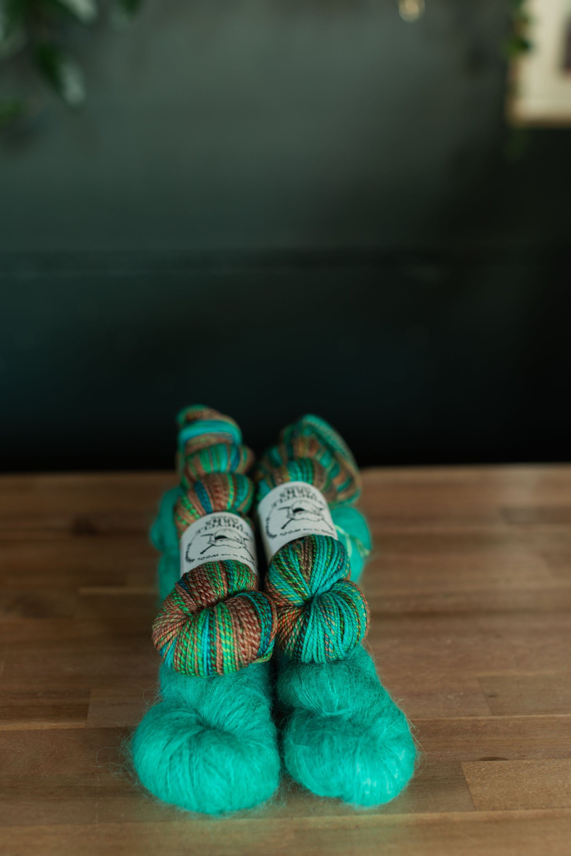 Kits include 2 skeins of Spincycle Dyed In The Wool and 2 skeins of Birdie. Yarn ordered this weekend will ship starting the week of November 10.