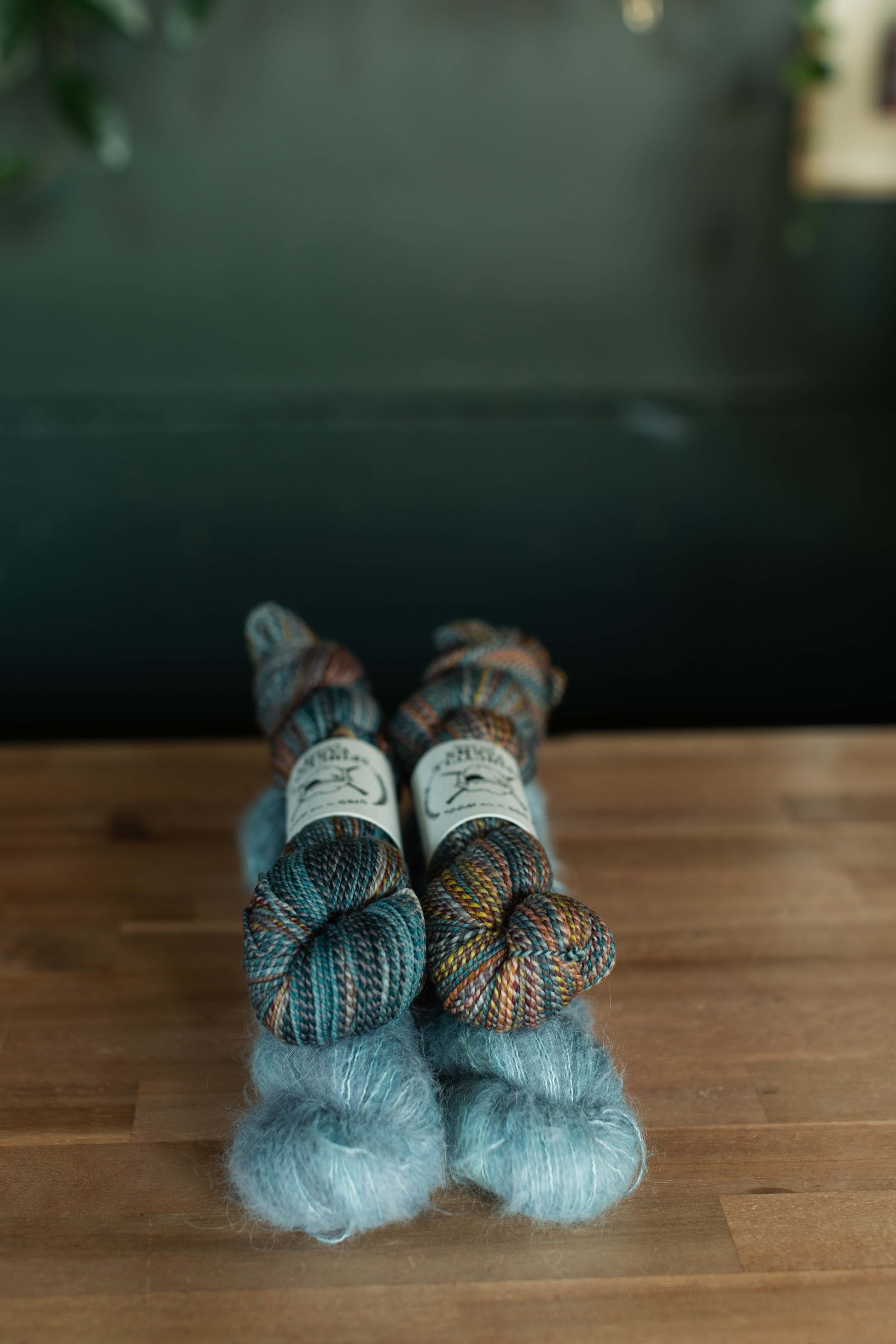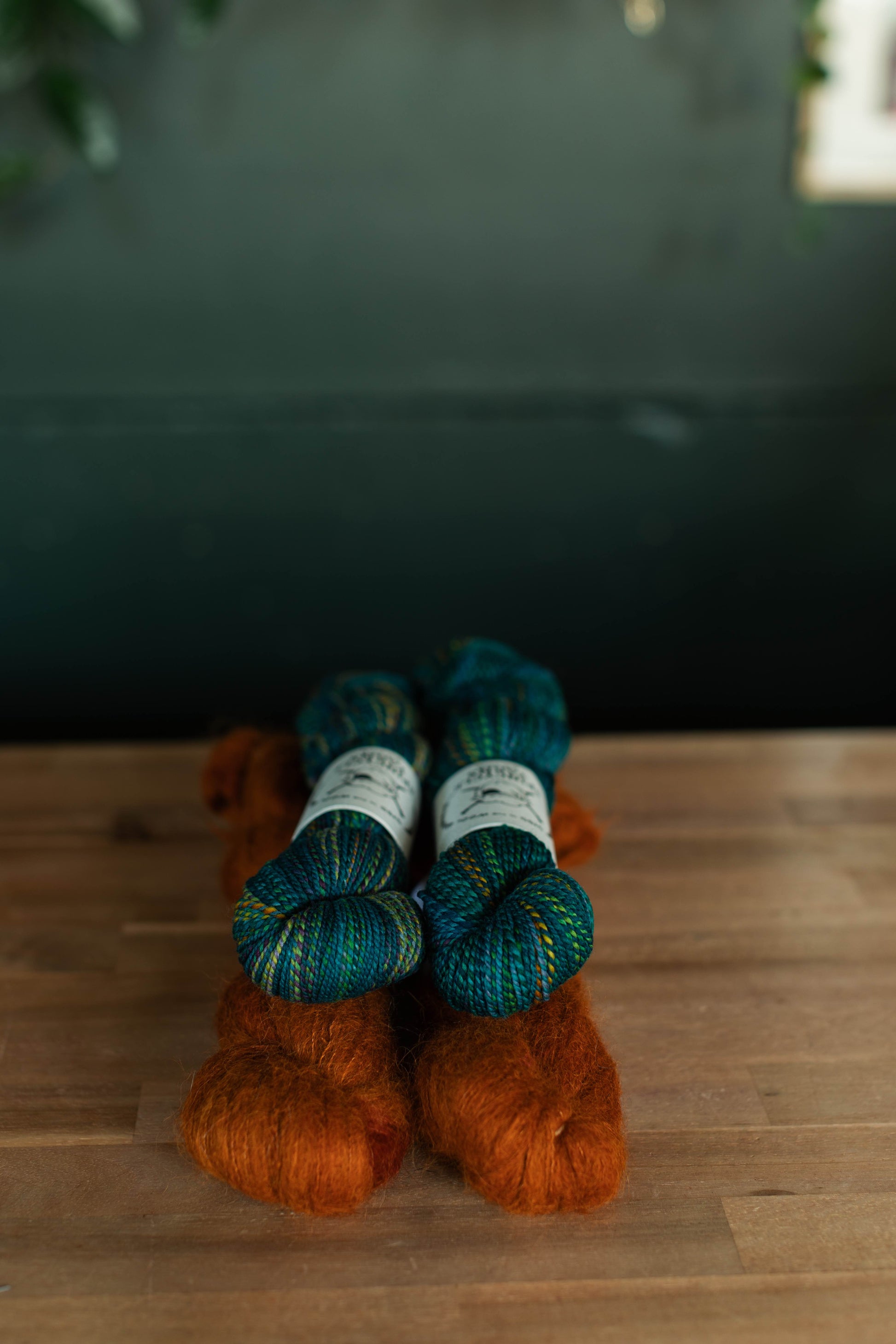 Birdie is known for its drape, this gorgeously soft baby suri alpaca yarn is blended with silk for strength. Birdie is the perfect alternative for those desiring a fluffy halo, but are allergic or sensitive to mohair. When held with another yarn, Birdie gives more opaque coverage than Mho Mho. Try it held single for a diaphanous effect, or doubled with itself, or another yarn, for more substance. To note: colors take slightly lighter to Birdie and its sisters, than to other bases.