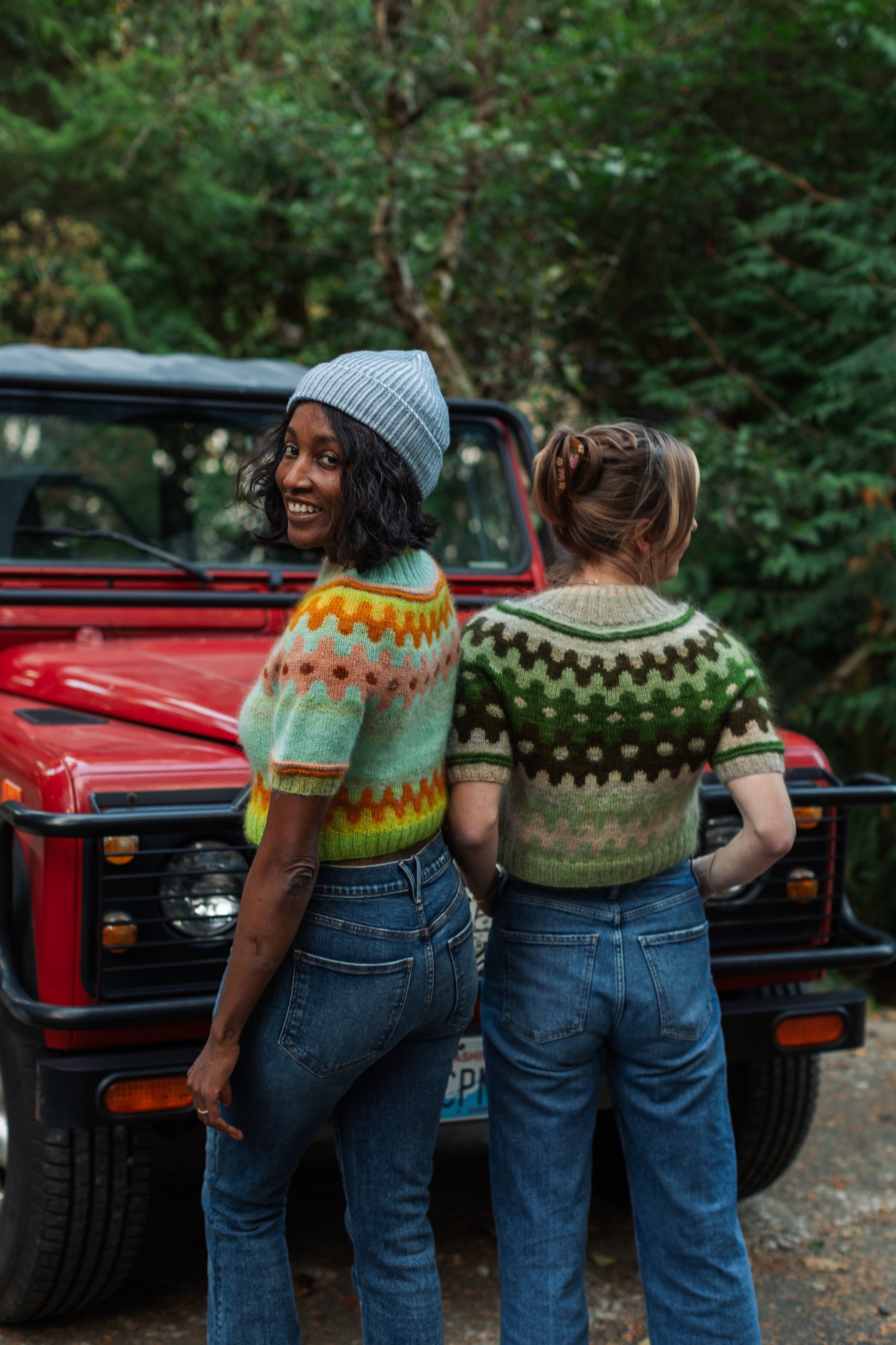 Kits include yarn to make a long sleeve version (closer to how Andrea Mowry's original pattern sweater looks!) and plenty of yarn to play with your contrast colors. Extend the yoke, sleeves or no sleeves... whatever floats your boat! One of the biggest lessons we've learned from Margot is to be fearless in doing your own thing!