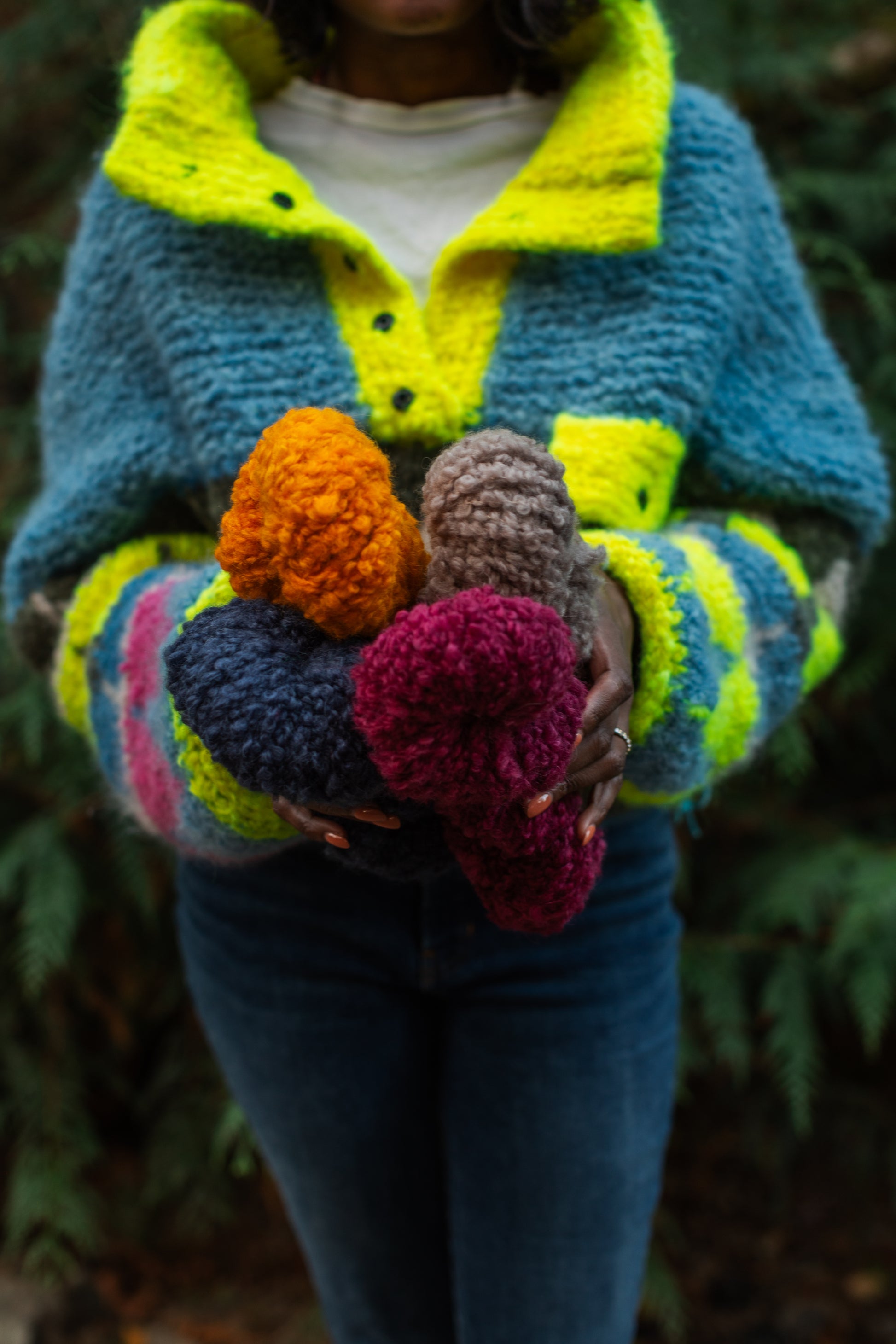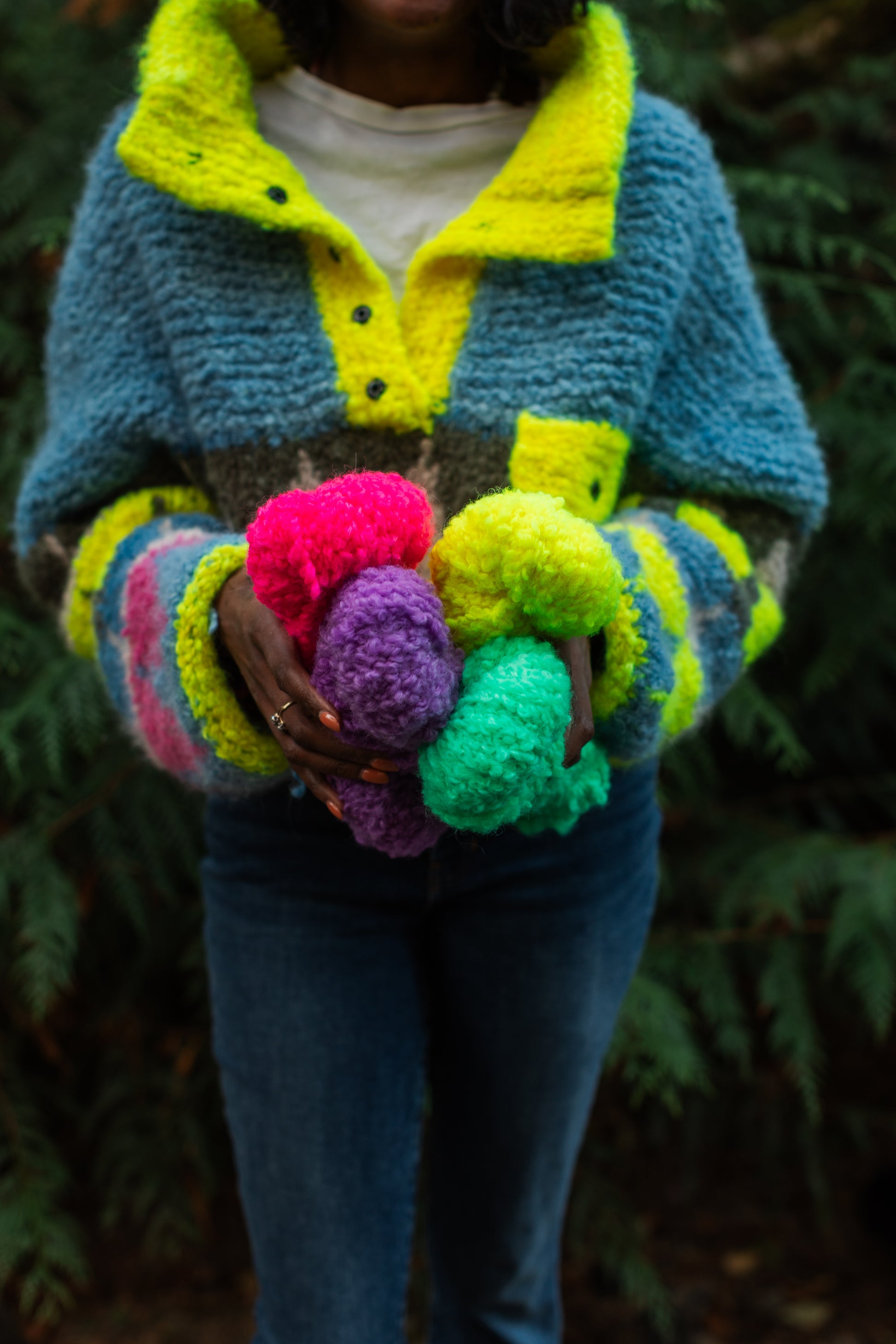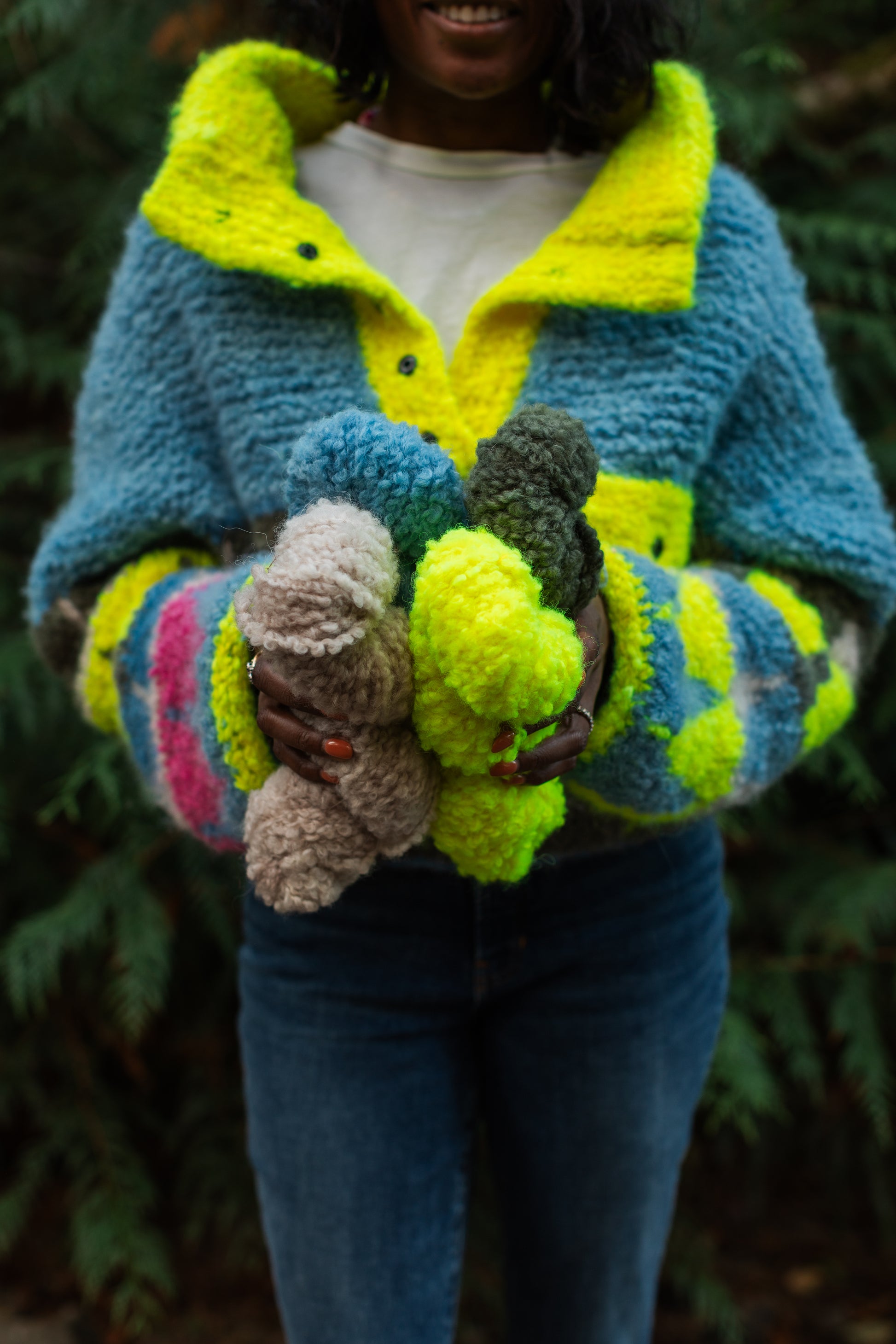 This base might be our most fun one yet!! It's a bulky boucle with a fiber content we can get behind. Use this yarn in chunky pullovers or cardis, baby jackets or blankets, or anywhere you want to add some bulky goodness!