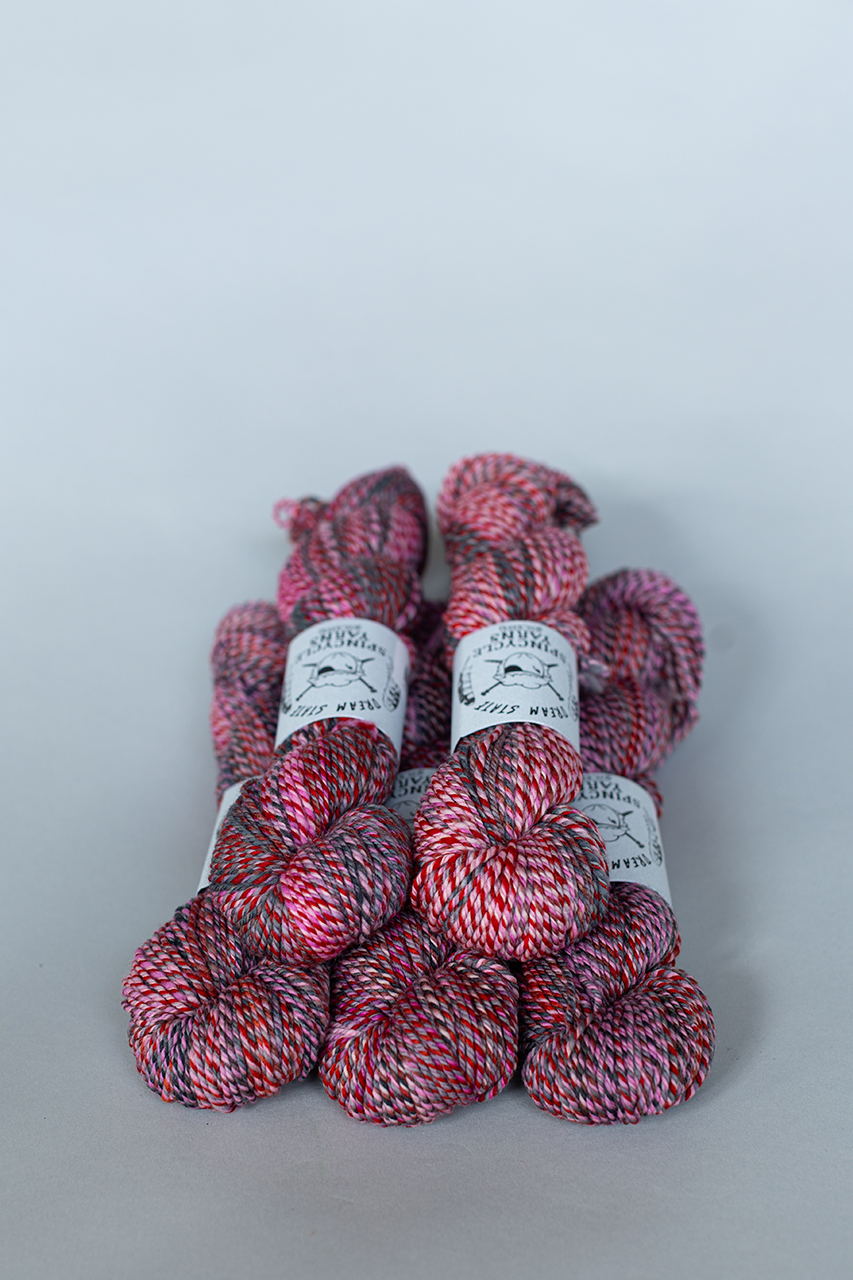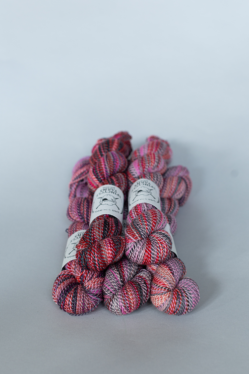 We are over the moon to share our new exclusive colorway from Spincycle Yarns. Pinky Swear is a delightful, bold swirl inspired by some of our favorite Lamb & Kid colors — the grays, Plaid, Pop Rocks, Taffy, and Vintage — expertly dyed, blended, and spun by the milling wizards at Spincycle. We love it and we pinky swear you will too!