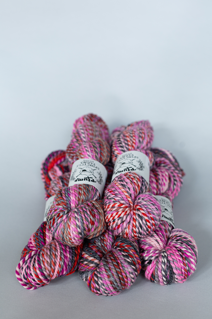 PLUMP • bulky weight • 100% superwashed American wool • 100 yards per skein • hand wash cold, lay flat to dry • MADE IN THE USA FROM SHEEP TO SKEIN