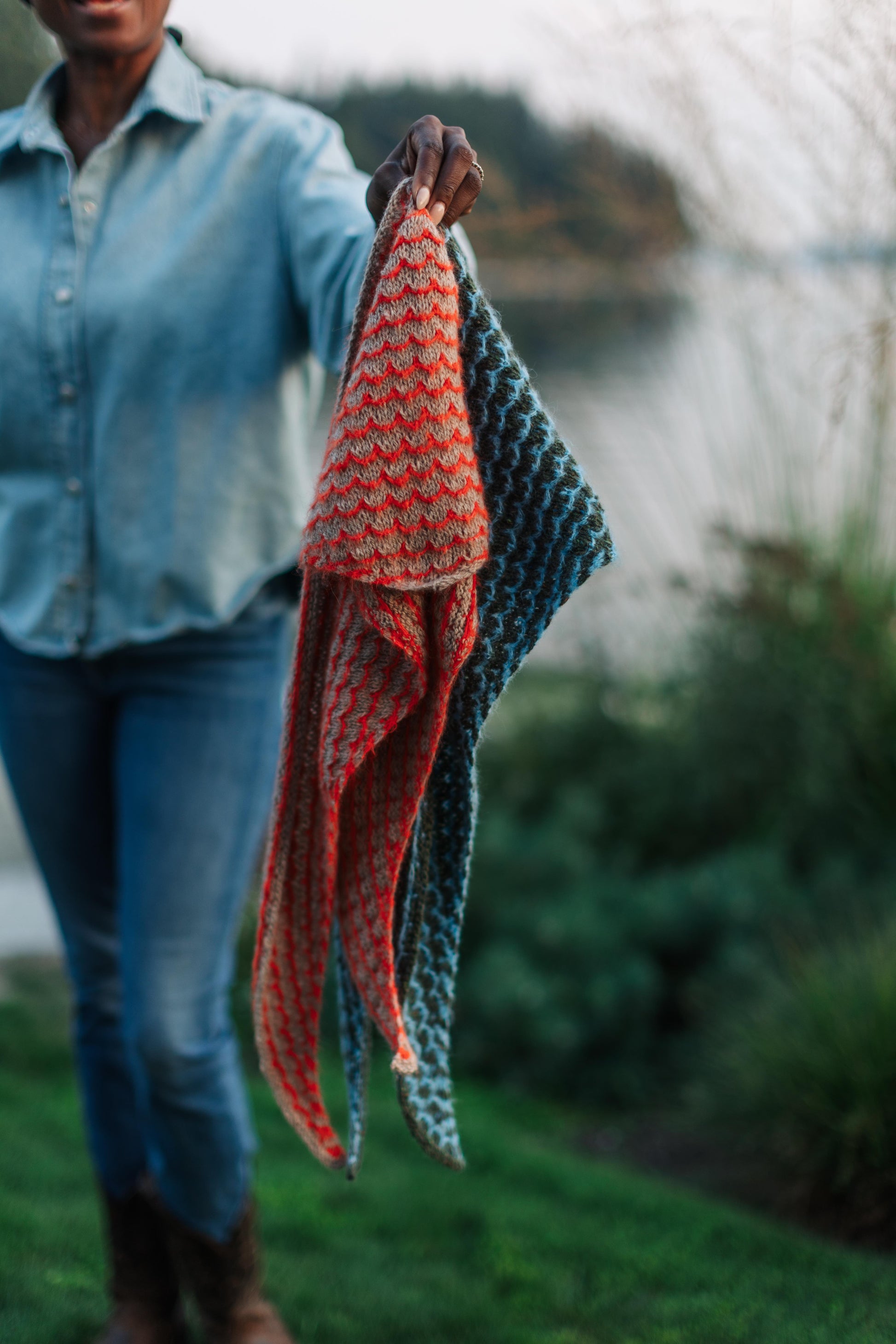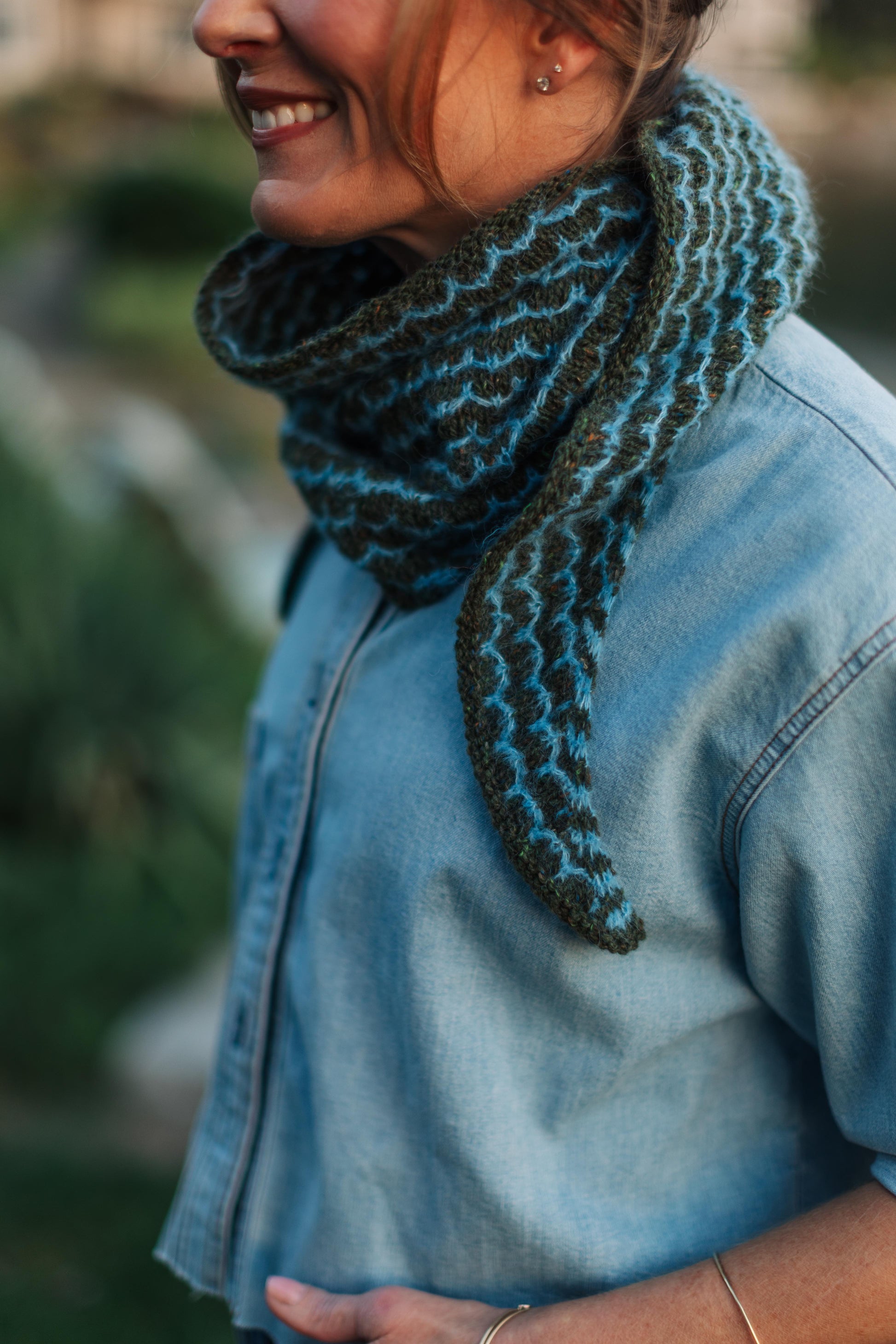 We love a good bandana, and this one ticks a lot of boxes! It’s lightweight both in the knitting and in the wearing, and it’s a fun-to-work slip stitch pattern in an easily memorized eight-row repeat.