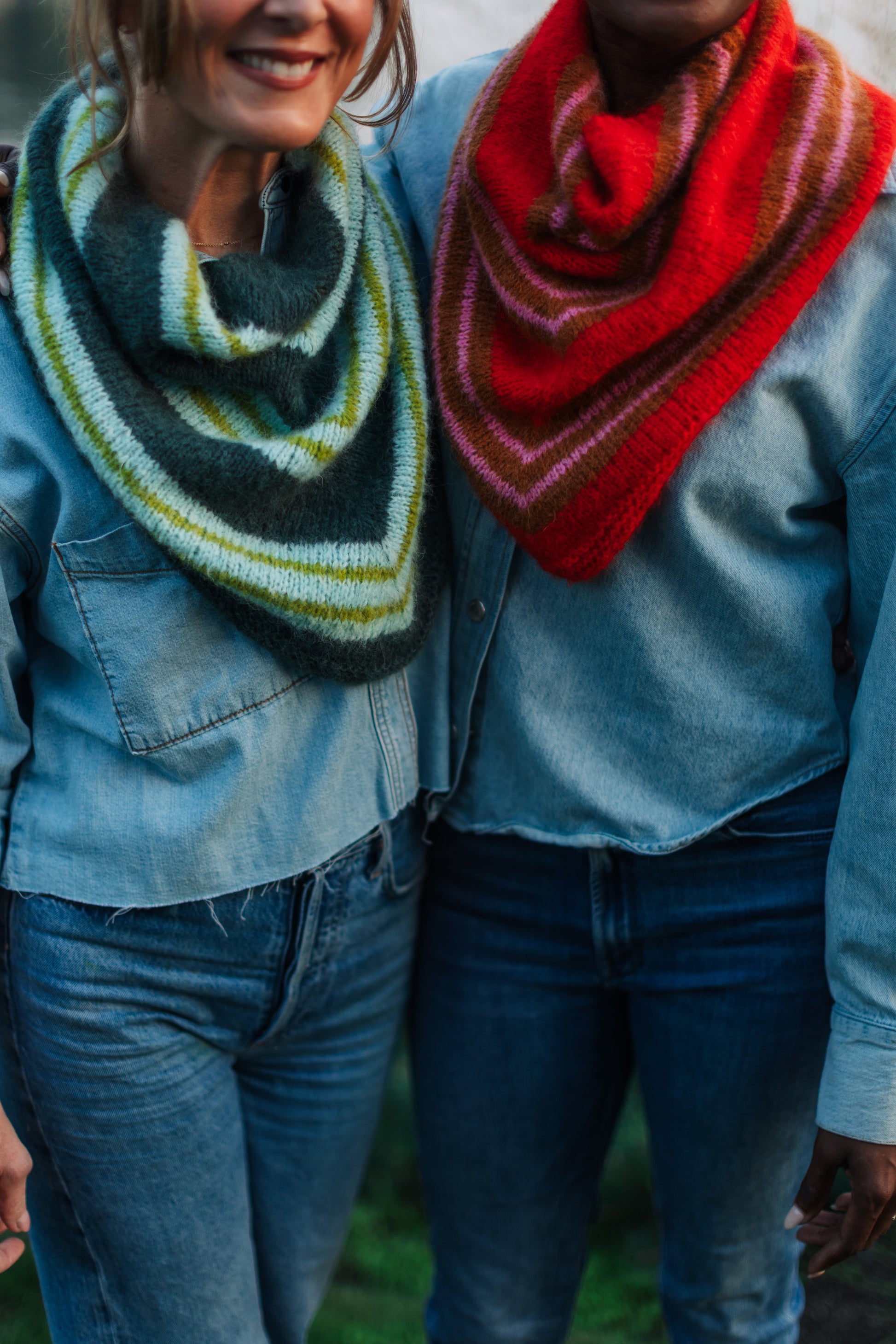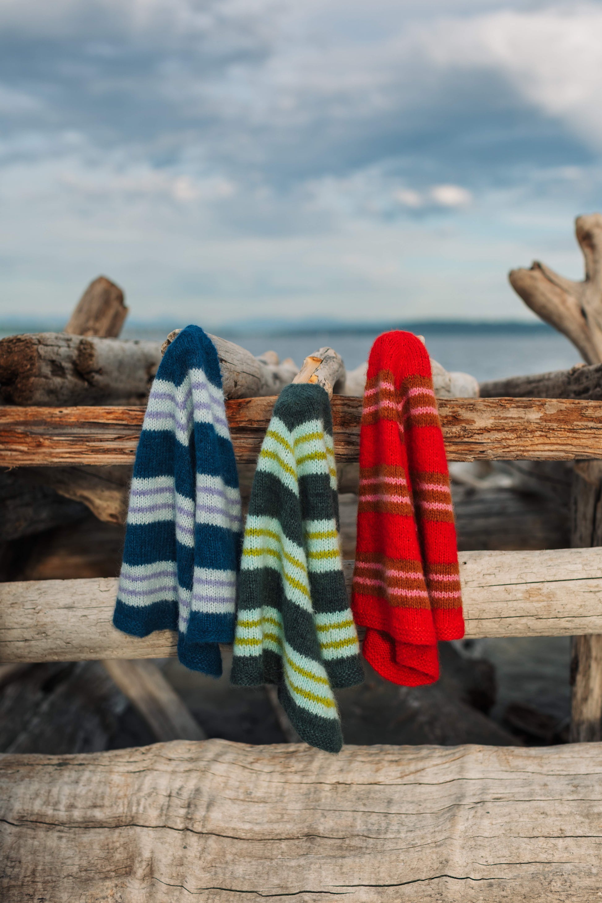 Kit #2: MC, 1 skein Birdie in color Alpine Flannel; CC1, 1 skein Birdie in color Glass Jar; CC2, 1 skein Birdie in color Sour Apple