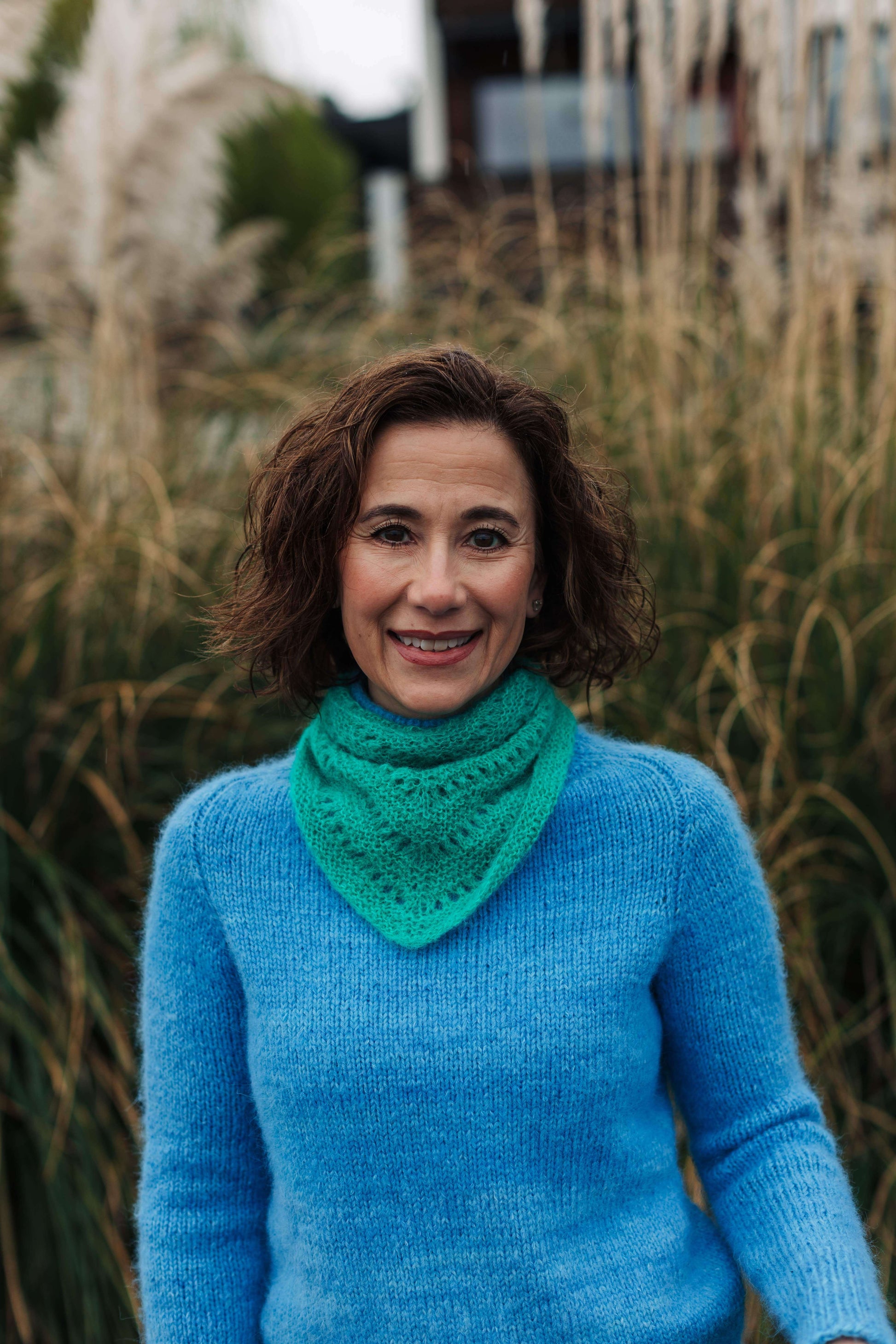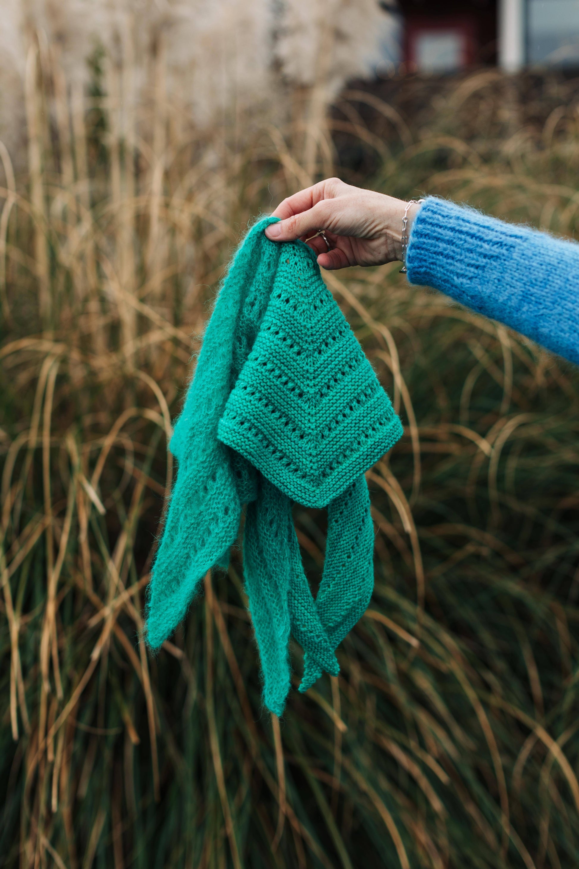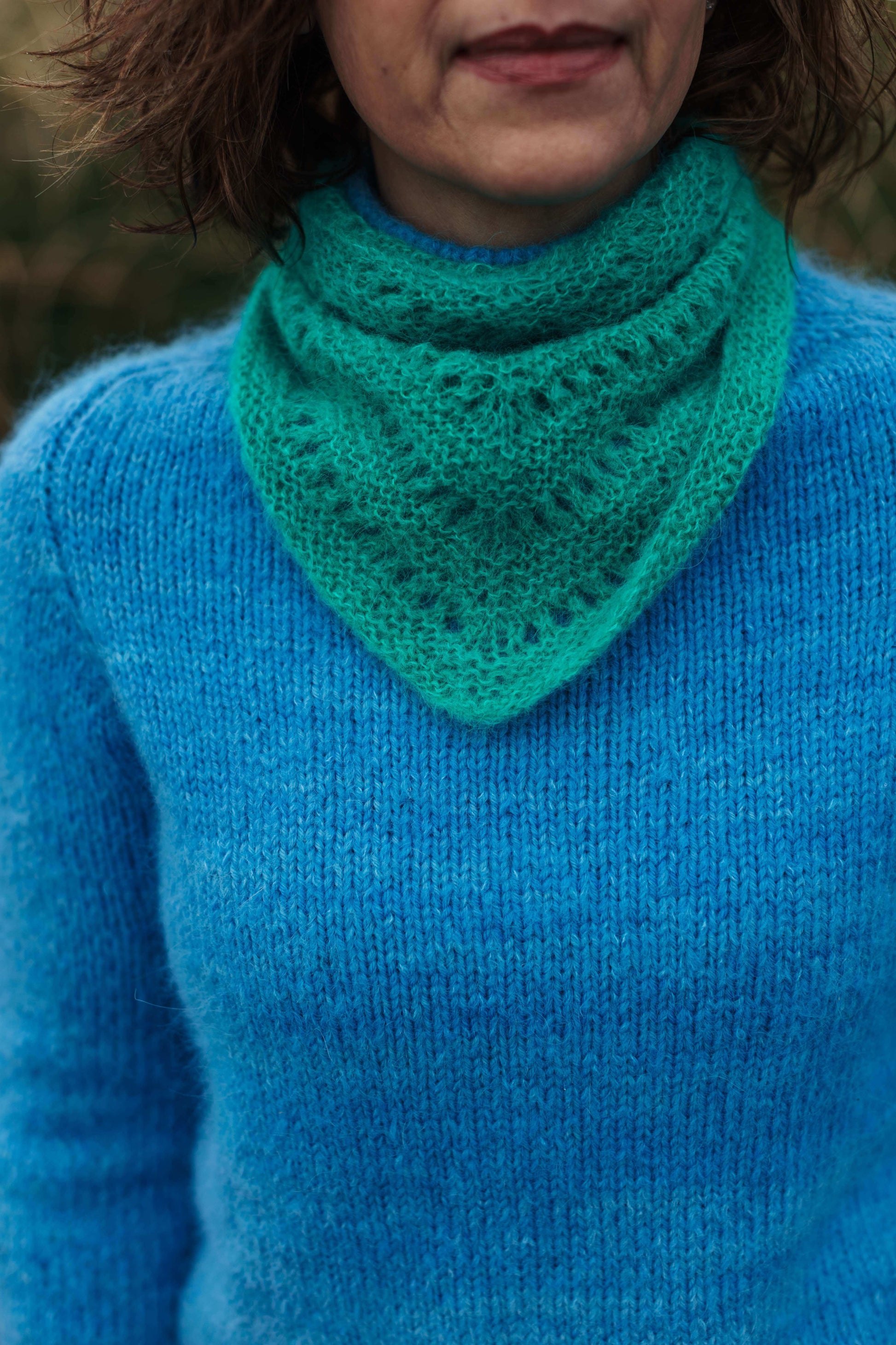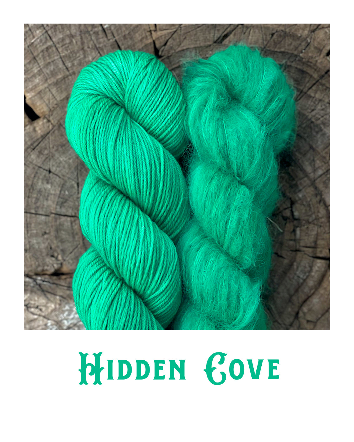 We knit two samples, one each in Birdie held single and Trio DK, both in another new colorway for spring called Hidden Cove, both available as kits in our full spring palette!