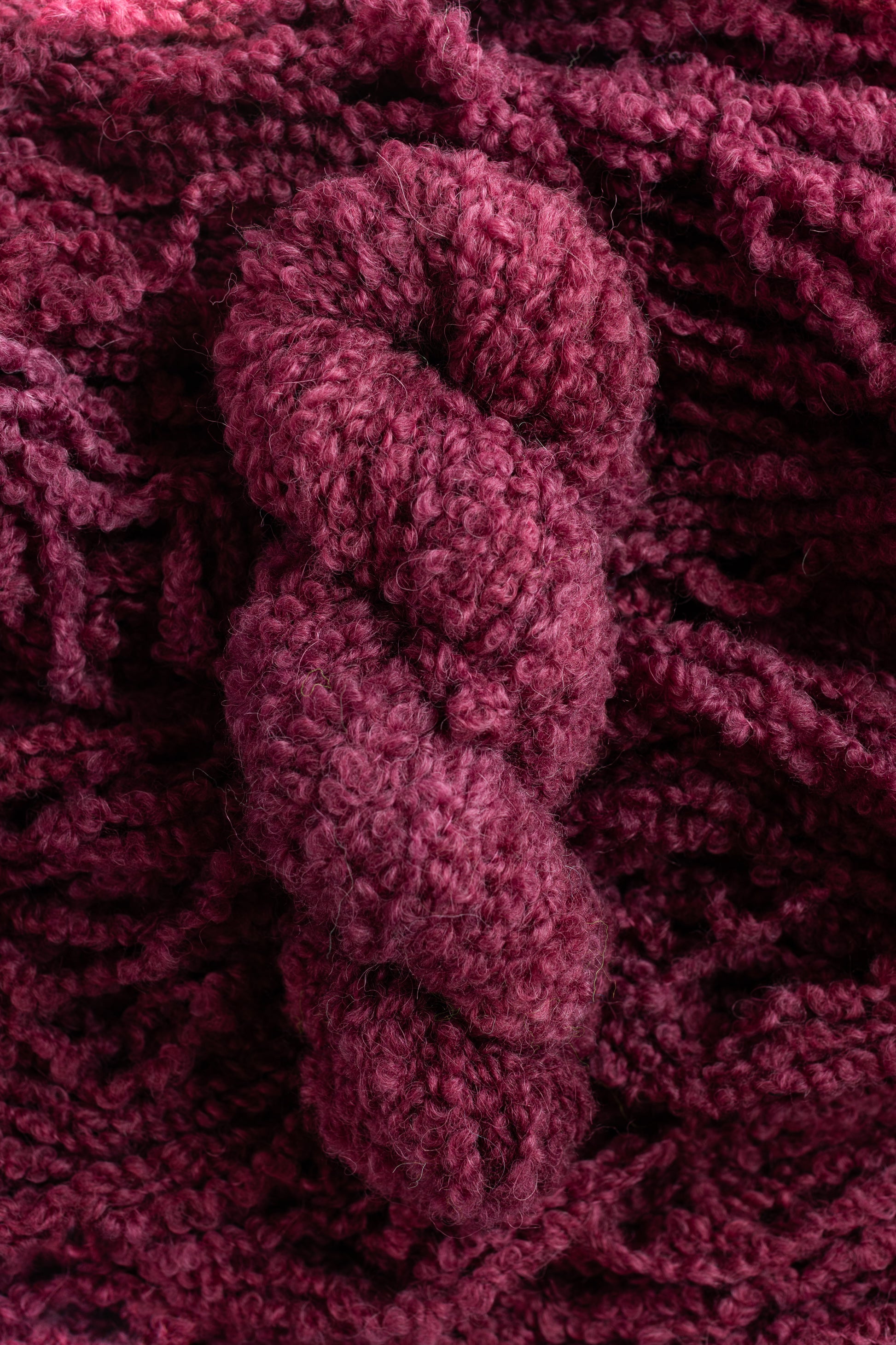 This base might be our most fun one yet!! It's a bulky boucle with a fiber content we can get behind. Use this yarn in chunky pullovers or cardis, baby jackets or blankets, or anywhere you want to add some bulky goodness!